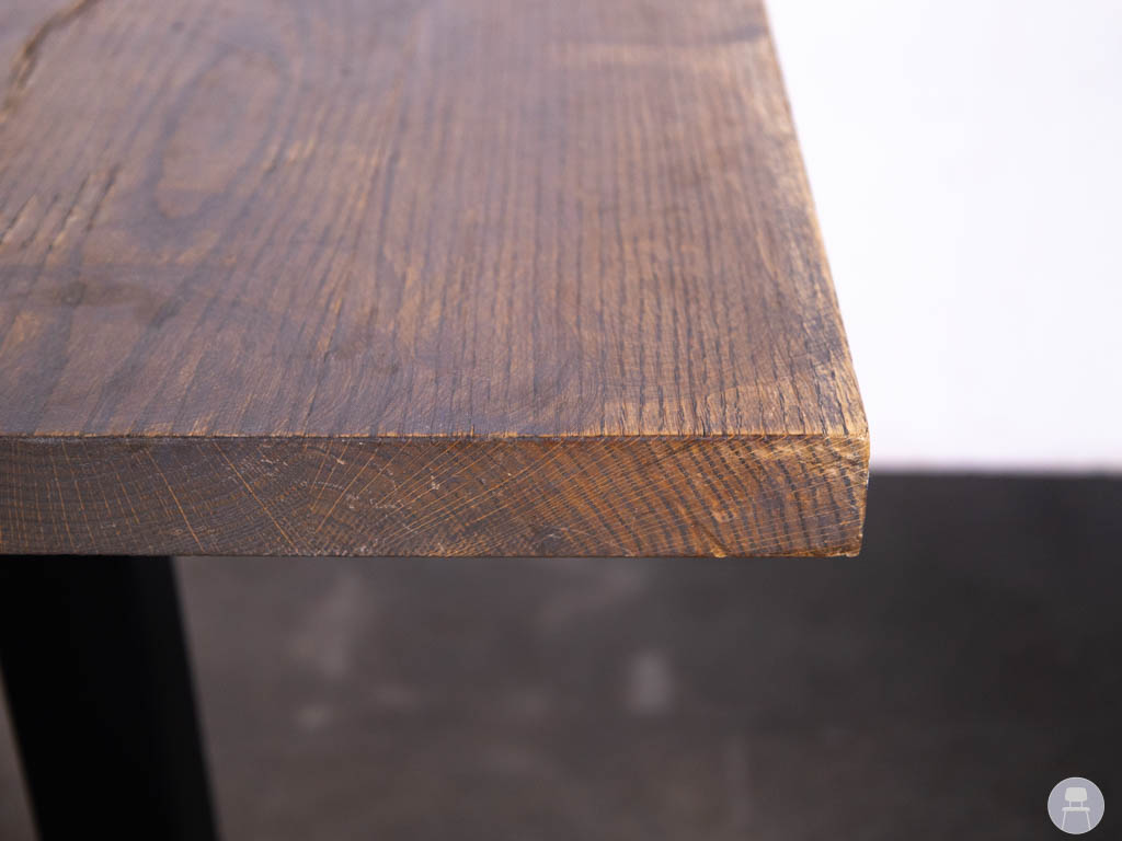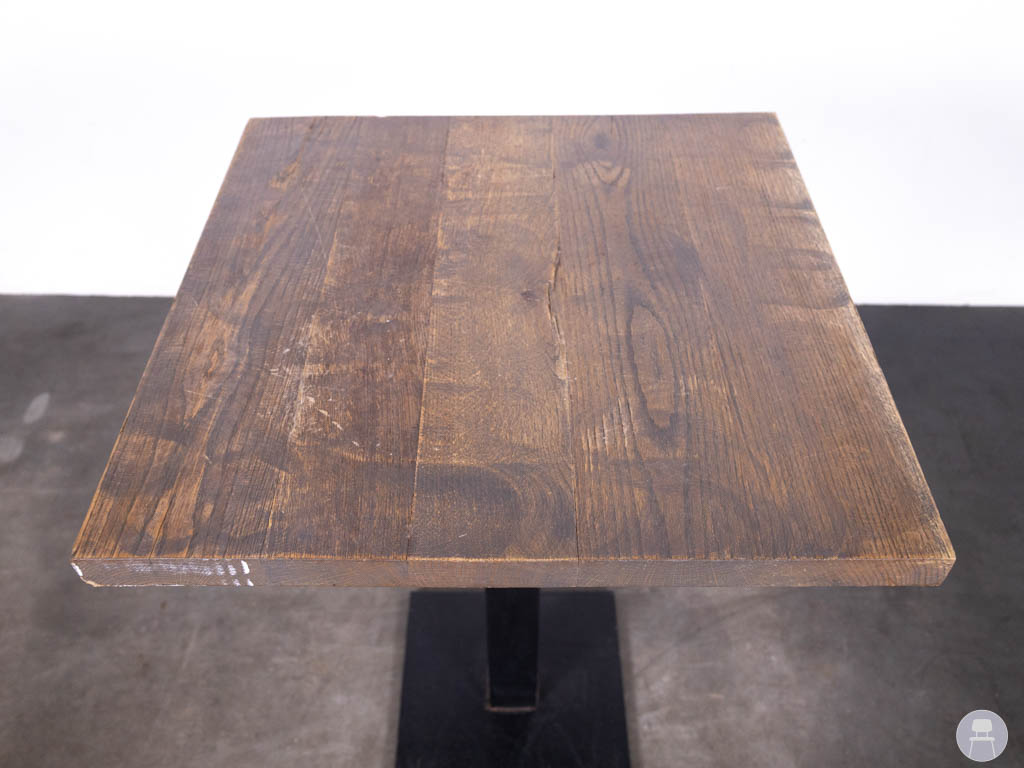 Statafel Lux halfhoog 70x70cm is een compacte en stijlvolle tafel, ideaal voor gebruik in cafés, restaurants, kantines of horecazaken met een informele zitopstelling. Het tafelblad van 70×70 cm is uitgevoerd in hout met een warme, robuuste uitstraling. De natuurlijke houtstructuur geeft de statafel karakter. Het blad vertoont lichte gebruikssporen aan de randen, passend bij eerder gebruik in de horeca.