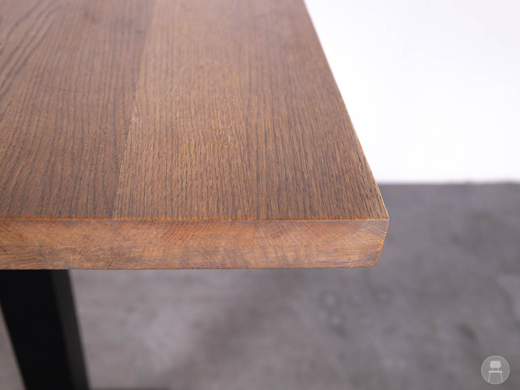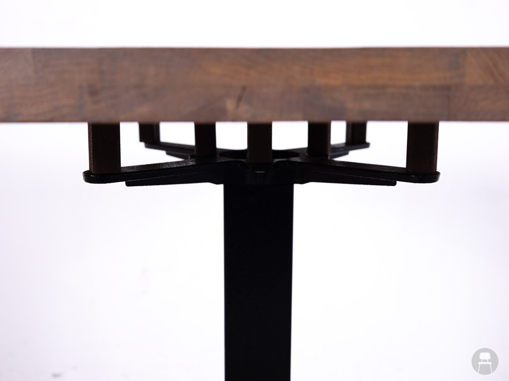 Wat deze tafel écht bijzonder maakt, is de unieke manier waarop het blad op het onderstel is bevestigd – een opvallend detail dat niet alleen zorgt voor extra stevigheid, maar ook direct een gevoel van design en vakmanschap uitstraalt. De Mamba is meer dan alleen praktisch; het is een statement in jouw zaak.