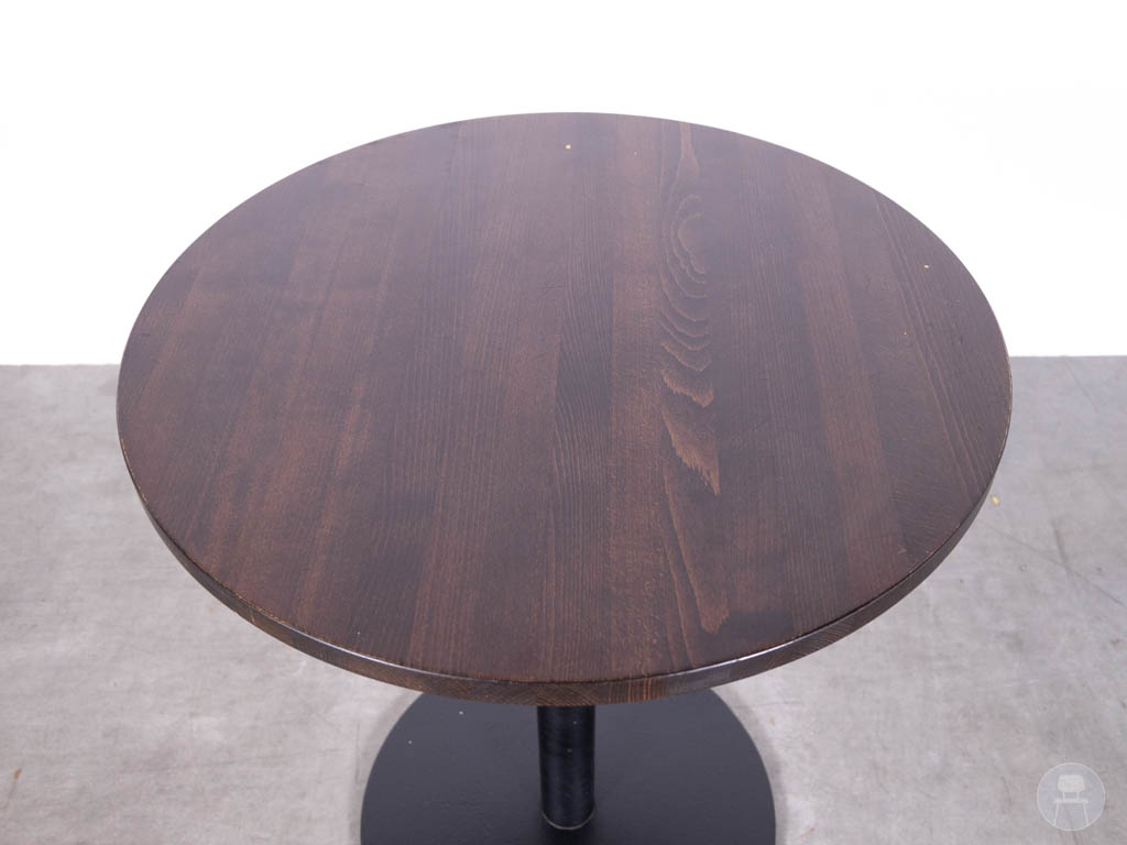 Statafel Milou eiken halfhoog 80cm rond is een stijlvolle en veelzijdige tafel die perfect past in een modern horecaconcept. Het donkerbruine eikenhouten blad van 80cm rond straalt warmte en klasse uit, en is groot genoeg voor een drankje, lunchgerecht of borrelplank. Het fraaie houtpatroon geeft de tafel karakter en een uitnodigende uitstraling – precies wat je zoekt in een sfeervolle horecaruimte.