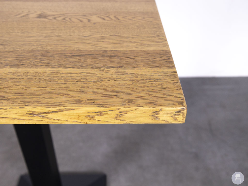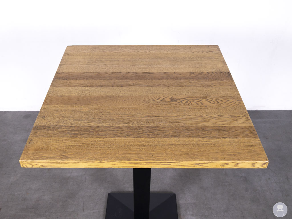 Statafel Remy eiken halfhoog 70x70cm is een stijlvolle halfhoge tafel met een vierkant tafelblad van 70×70 cm in warme eikenhout-look. Het blad is strak afgewerkt en geschikt voor intensief gebruik in horeca of kantooromgeving. De tafel staat op een stevig zwart metalen onderstel met een vierkante voetplaat, wat zorgt voor goede stabiliteit en een moderne industriële uitstraling. Door de halfhoge hoogte is deze statafel perfect te combineren met counterhoogte barkrukken of als flexibele werk- of overlegplek.