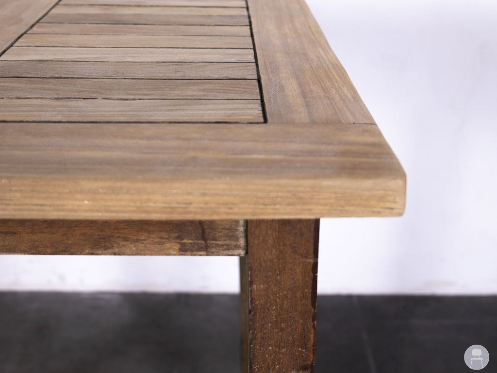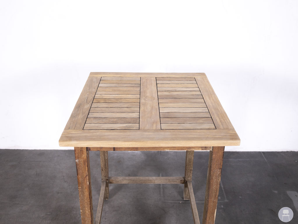 Het compacte formaat maakt de tafel perfect inzetbaar op kleine terrassen, binnenplaatsen of als bijzettafel tijdens evenementen. De natuurlijke houtkleur brengt warmte en karakter, terwijl de stevige constructie zorgt voor jarenlang intensief gebruik. Combineer bijvoorbeeld met barkrukken en je creëert moeiteloos een uitnodigende setting waar gasten graag aan blijven staan of zitten.