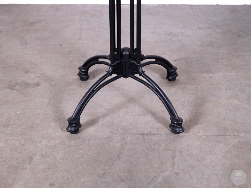 Het tafelblad staat op een stevig Bologna onderstel van zwart gietijzer met sierlijke poten. Dit type bistro onderstel zorgt voor optimale stabiliteit en een authentieke horecauitstraling.