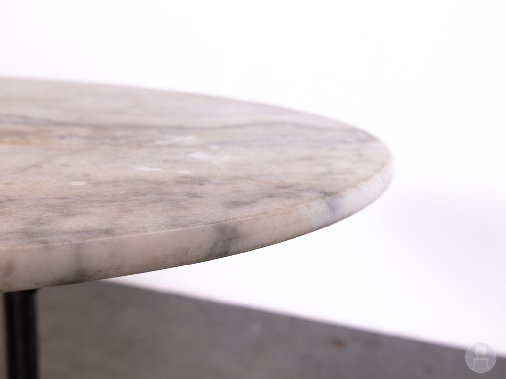 Het marmeren blad is slijtvast en eenvoudig schoon te houden, terwijl het zware gietijzeren onderstel zorgt voor uitstekende stabiliteit, ook bij intensief gebruik. De combinatie van marmer en gietijzer geeft deze terrastafel een authentieke, bistro-achtige sfeer die perfect past bij zowel klassieke als moderne horeca-interieurs.