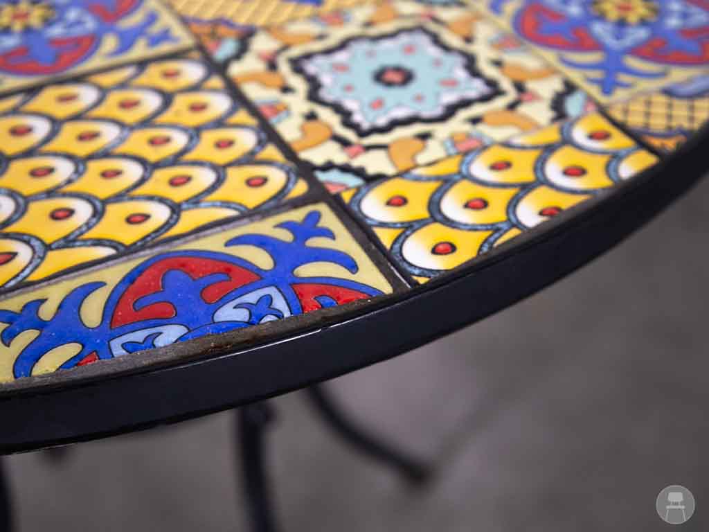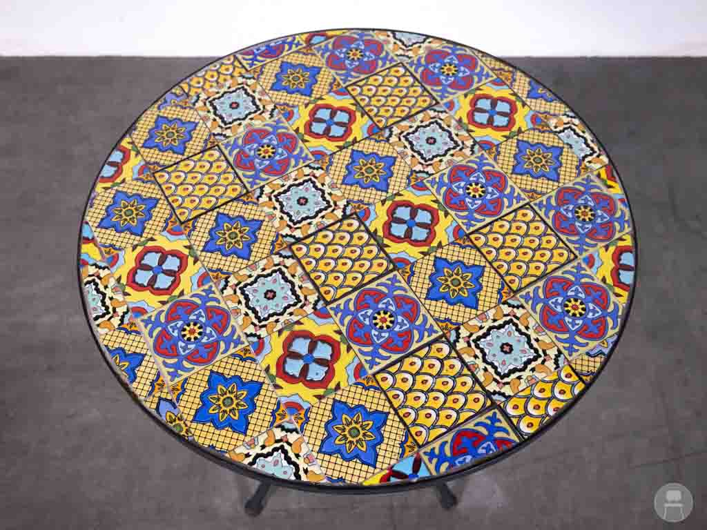 Terrastafel Monique mozaïek 70cm rond brengt direct kleur en karakter naar elk terras of horecagelegenheid. Het ronde tafelblad van 70 cm is voorzien van een opvallend en kleurrijk mozaïekpatroon, geïnspireerd op mediterrane tegelmotieven. Een echte blikvanger die perfect past bij een levendige, sfeervolle buitenomgeving.