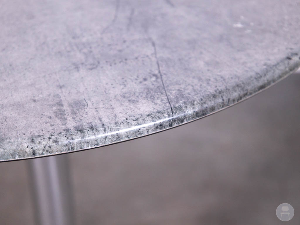 Dankzij het compacte formaat is deze terrastafel geschikt voor twee tot drie personen en eenvoudig te combineren met diverse terrasstoelen. Deze tafel is tweedehands en vertoont gebruikssporen, passend bij eerder gebruik in de horeca.