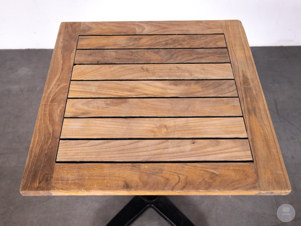 Terrastafel Teak Karin 60x60cm is een compacte en praktische terrastafel die ideaal is voor horecaondernemers die efficiënt met hun ruimte willen omgaan. Deze vierkante tafel met afmetingen van 60×60 cm is voorzien van een teak houten blad in een warme, natuurlijke kleur en een stevig zwart metalen onderstel.