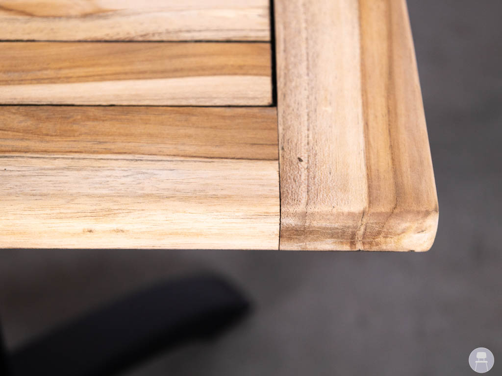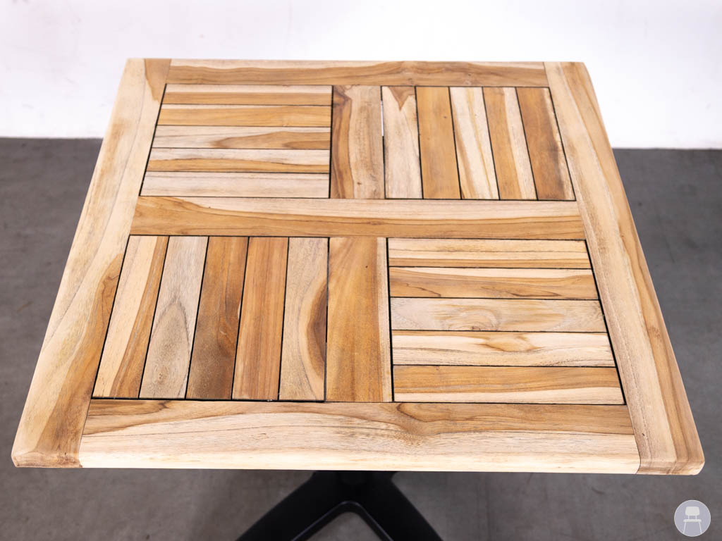 Deze terrastafel is voorzien van een teakhouten blad in een natuurlijke kleur, wat zorgt voor een warme en authentieke uitstraling. Teak staat bekend om zijn weerbestendige eigenschappen en lange levensduur, ideaal voor terrassen en buitentoepassingen. Het aluminium onderstel in zwart biedt een stevige en stabiele basis en geeft de tafel een moderne uitstraling.