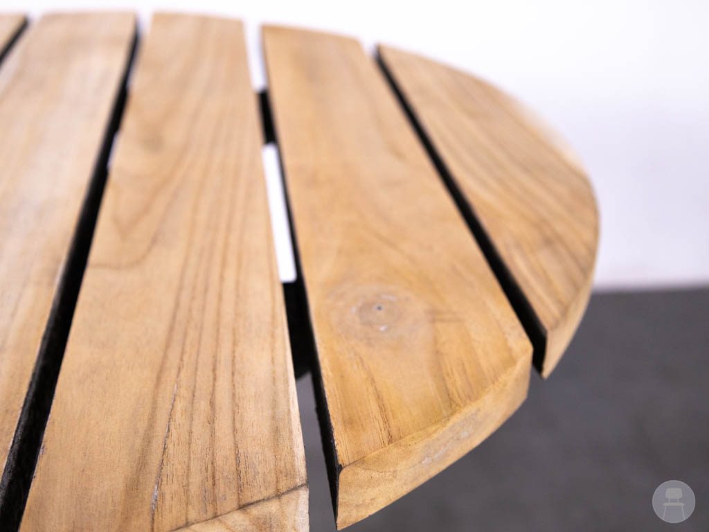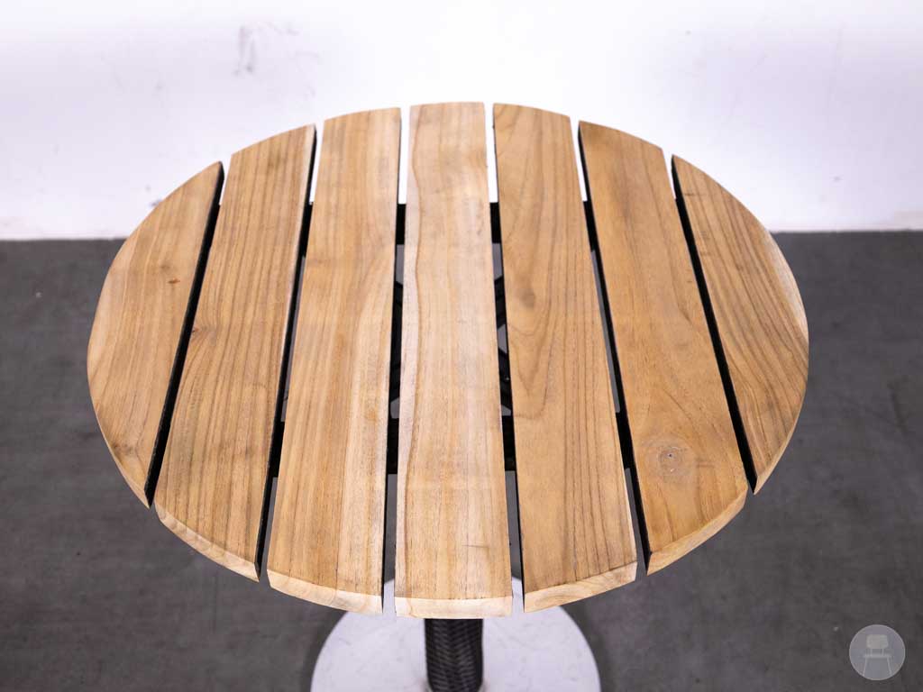 Terrastafel Teak Roos 70cm rond is een prachtige en duurzame tafel die direct warmte en sfeer toevoegt aan ieder horecaterras. Het stevige, ronde blad is gemaakt van dik teakhout en door ons zorgvuldig opgeschuurd, waardoor de natuurlijke kleur en de unieke houtnerf weer schitterend zichtbaar zijn. Teakhout staat bekend om zijn sterke en weerbestendige eigenschappen, waardoor deze tafel perfect geschikt is voor intensief buitengebruik.