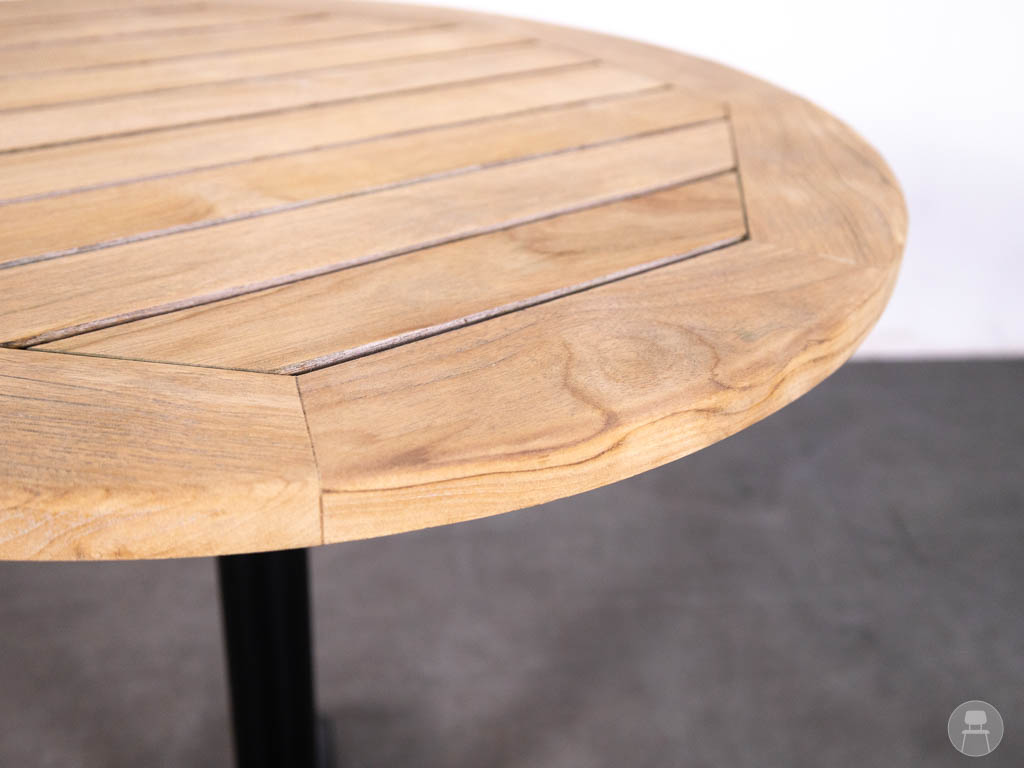 Terrastafel Teak Sjors 70cm rond straalt natuurlijke charme uit en moderne stabiliteit! Met een prachtig blad van echt teakhout straalt deze terrastafel warmte en kwaliteit uit. De speelse, schuine legpatronen in het hout geven het blad karakter en een ambachtelijke uitstraling die perfect past op elk horecaterras. Teak is bovendien bij uitstek geschikt voor buitengebruik: het is duurzaam, weerbestendig en vergrijst op elegante wijze.