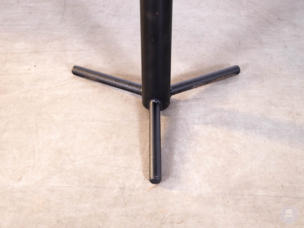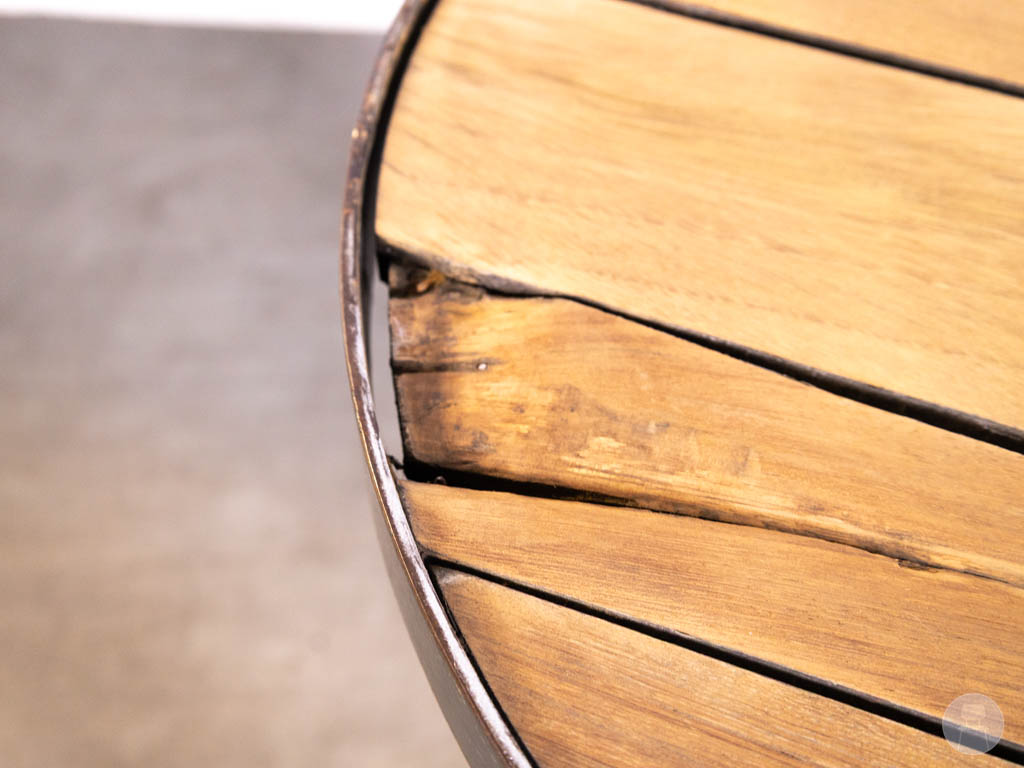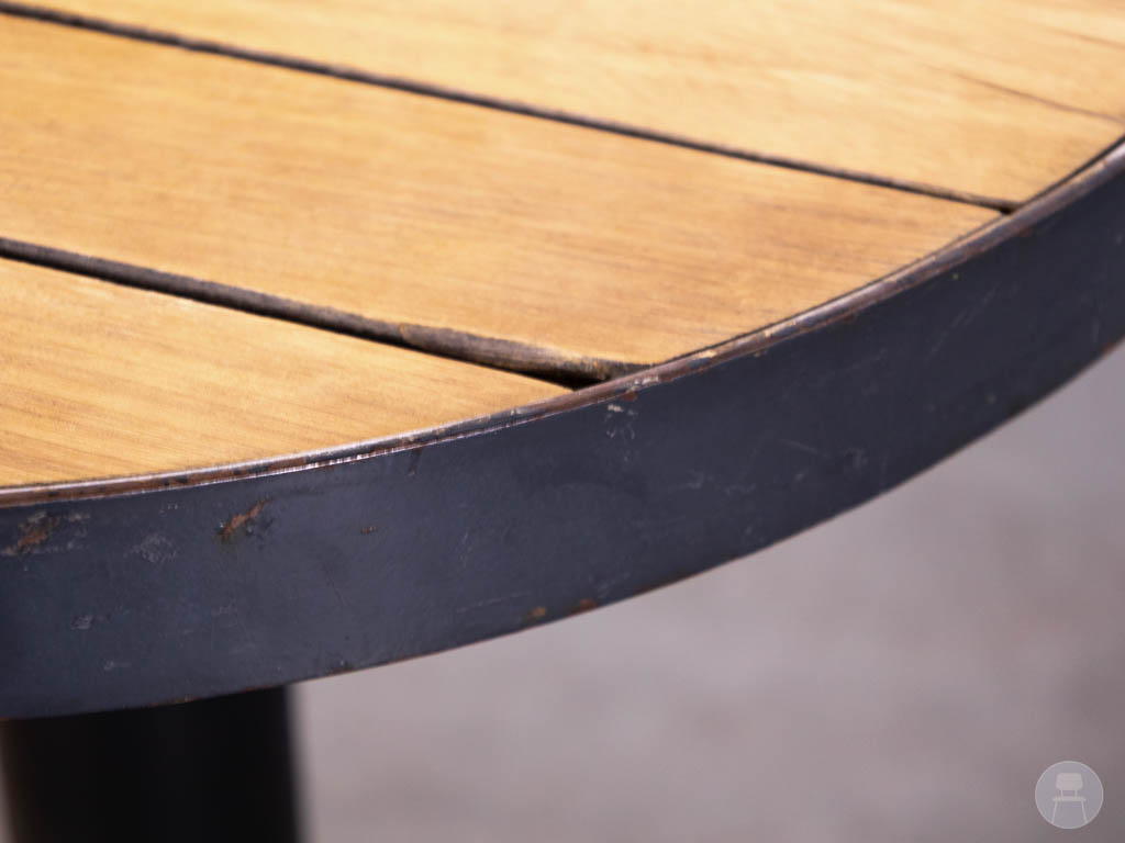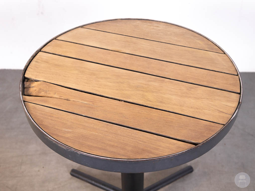 De combinatie van teak hout en een zwart metalen frame maakt deze tafel breed inzetbaar binnen de horeca.