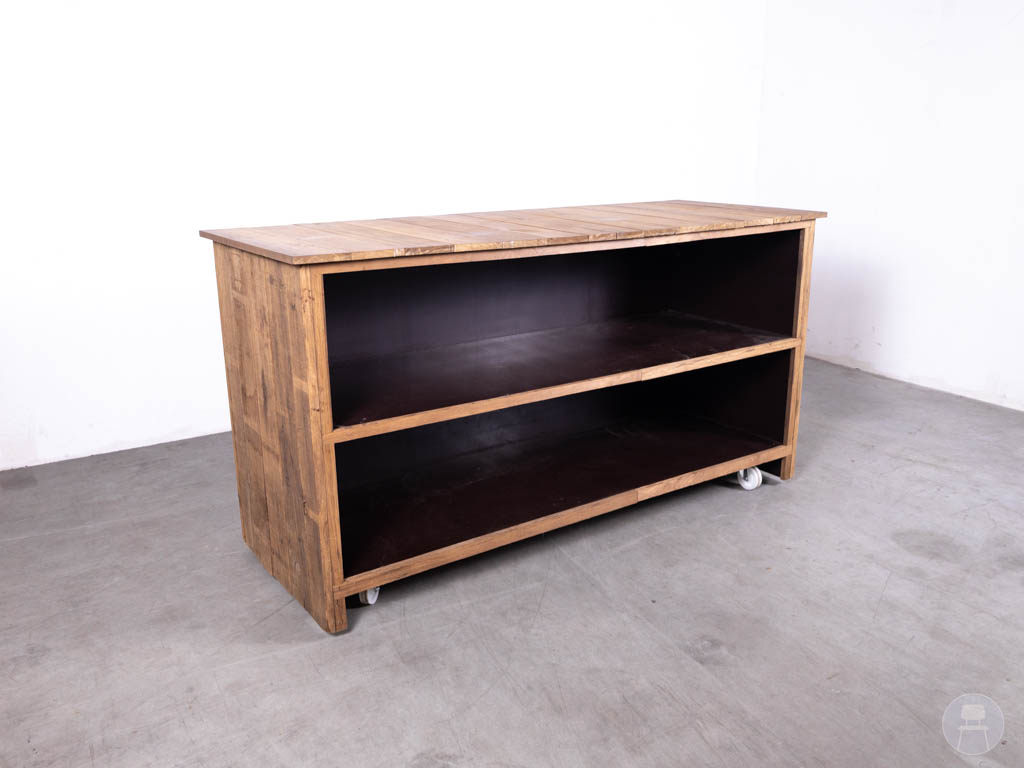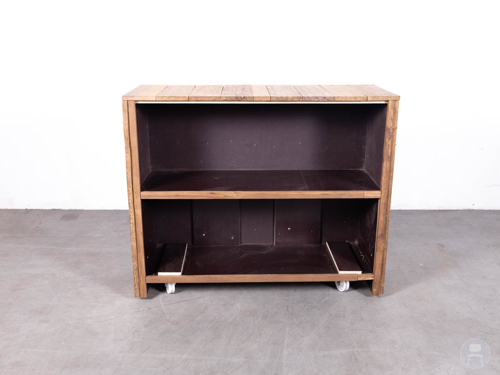 Debrasseermeubel Inge mobiel 135x55cm is een praktisch horeca debrasseermeubel uitgevoerd in een robuuste houtlook met een bruine kleur.