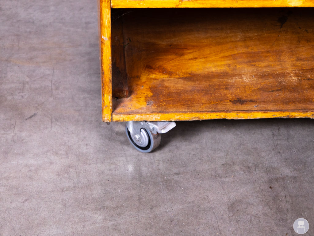 Met zijn breedte van 145 cm biedt Henry volop opbergruimte in de vorm van verschillende open vakken, perfect voor het organiseren van servies, glazen, bestek of andere horecabenodigdheden. Het meubel staat op stevige wielen, waardoor het eenvoudig te verplaatsen is – ideaal voor dynamische omgevingen waarin flexibiliteit belangrijk is. Onderaan bevindt zich een praktisch deurtje, achter welke extra opslagruimte schuilgaat voor spullen die uit het zicht moeten blijven. Een perfect meubel voor wie op zoek is naar een combinatie van vintage stijl en praktische bruikbaarheid.
