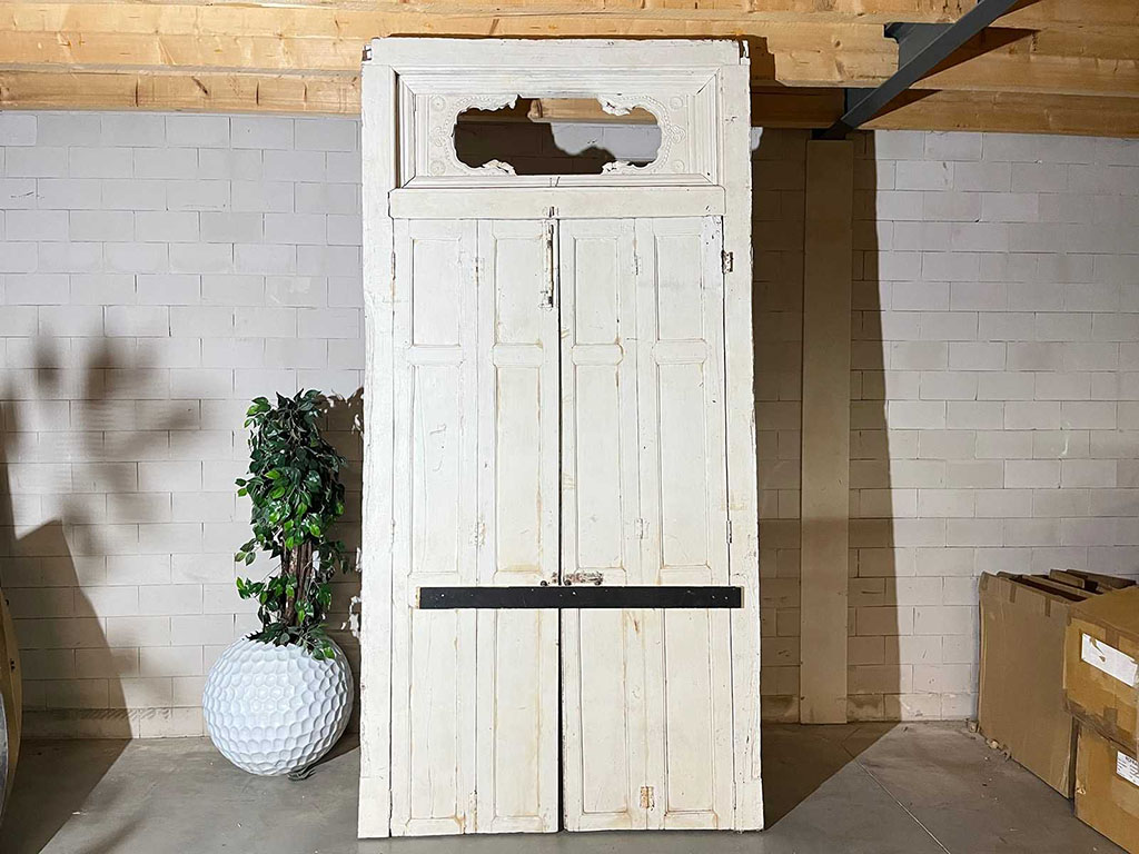 Deurpaneel Vintage Mumbai 150x305cm is een indrukwekkend en uniek stuk dat rechtstreeks afkomstig is uit een oud Indiaas gebouw. Met zijn authentieke vintage uitstraling, robuuste houten constructie en subtiele houtsnijwerken, brengt deze deur direct een exotische en historische sfeer in jouw interieur. De worn-out crème kleur en het prachtige bovenpaneel met uitgesneden details maken dit een echte eyecatcher. Perfect te gebruiken als functionele deur of als decoratief element in een horecazaak, winkel of woning. Dit unieke stuk ademt karakter en vertelt een verhaal van vakmanschap en traditie. Wil jij een vleugje Indiaas erfgoed in huis halen? Dit zeldzame exemplaar wacht op een nieuwe bestemming!