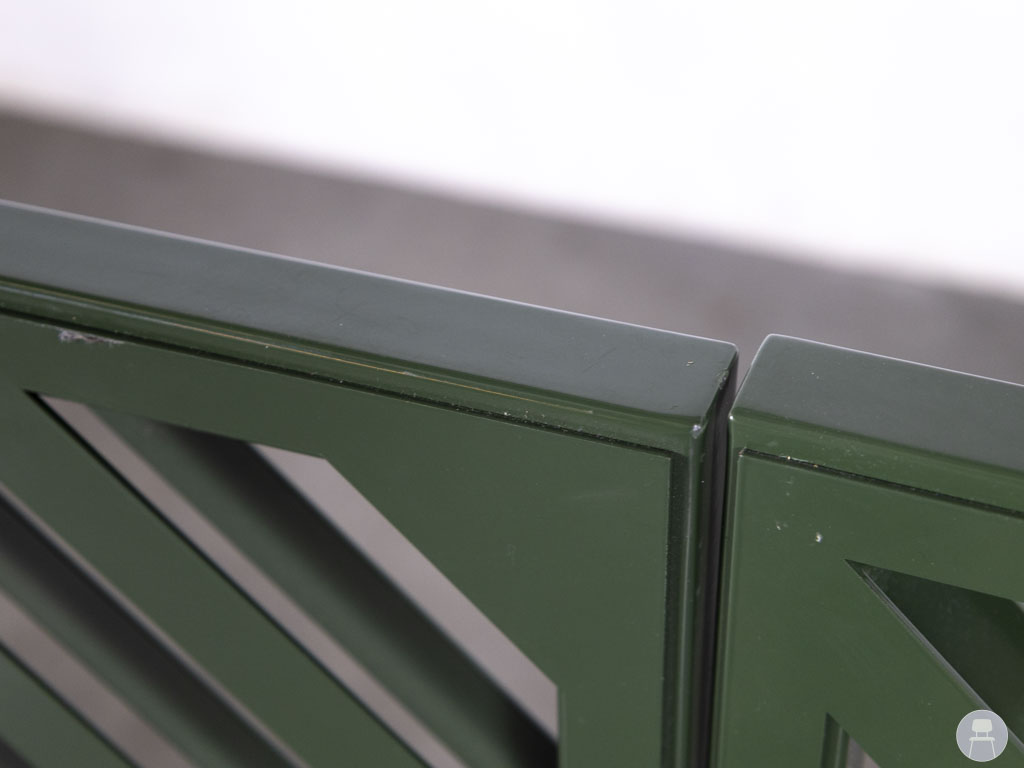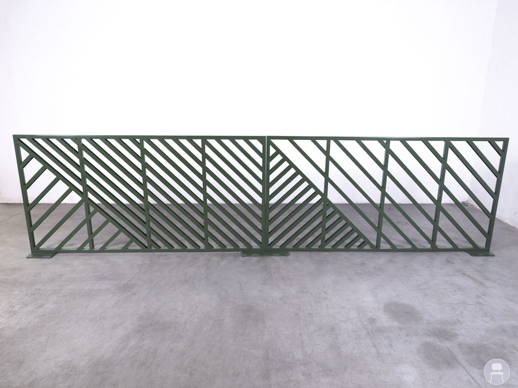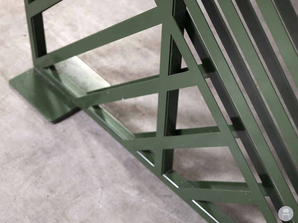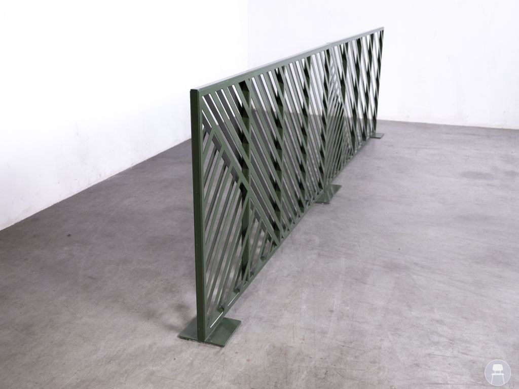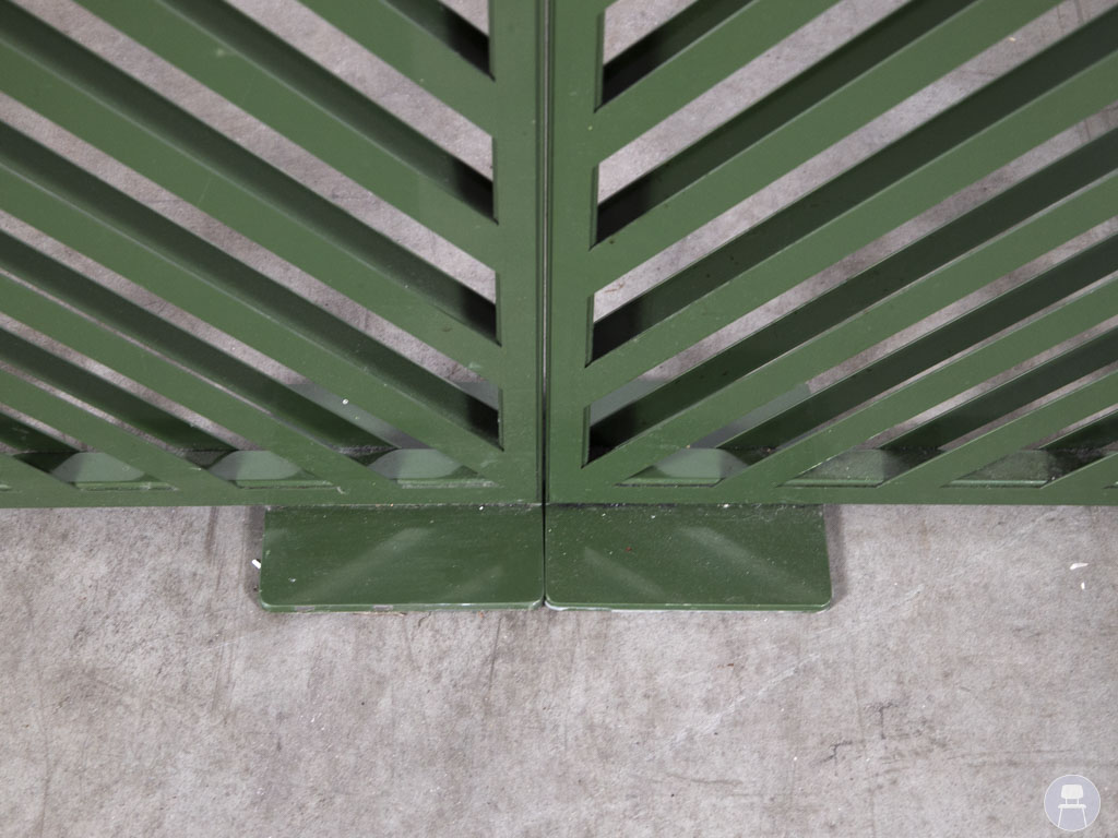 Divider hek groen 400x100cm in een donkergroene kleur is uitgevoerd in metaal en heeft een speels geometrisch lijnenspel dat zorgt voor een moderne uitstraling. De totale afmeting is 400 cm breed en 100 cm hoog, en het hekwerk bestaat uit twee losse delen, wat het eenvoudig maakt om flexibel te plaatsen of op te bergen. Ideaal voor het afbakenen van ruimtes op een terras, in een horecagelegenheid of tijdens evenementen, waarbij functionaliteit en design hand in hand gaan.
