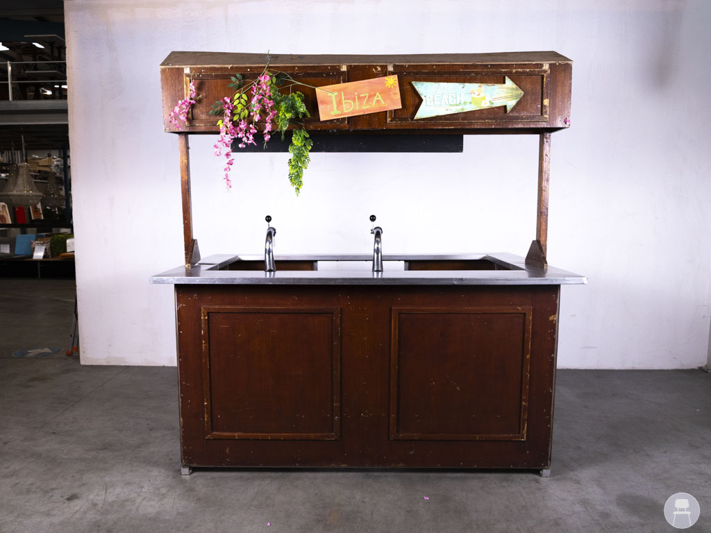 Let op: de horecabar heeft duidelijke gebruikssporen, met name aan de houten ombouw en de binnenzijde. De kraan is aan de binnenkant dichtgekit en de kassabak is vastgeplakt, waardoor de bar van binnen wat liefde en aandacht kan gebruiken.
