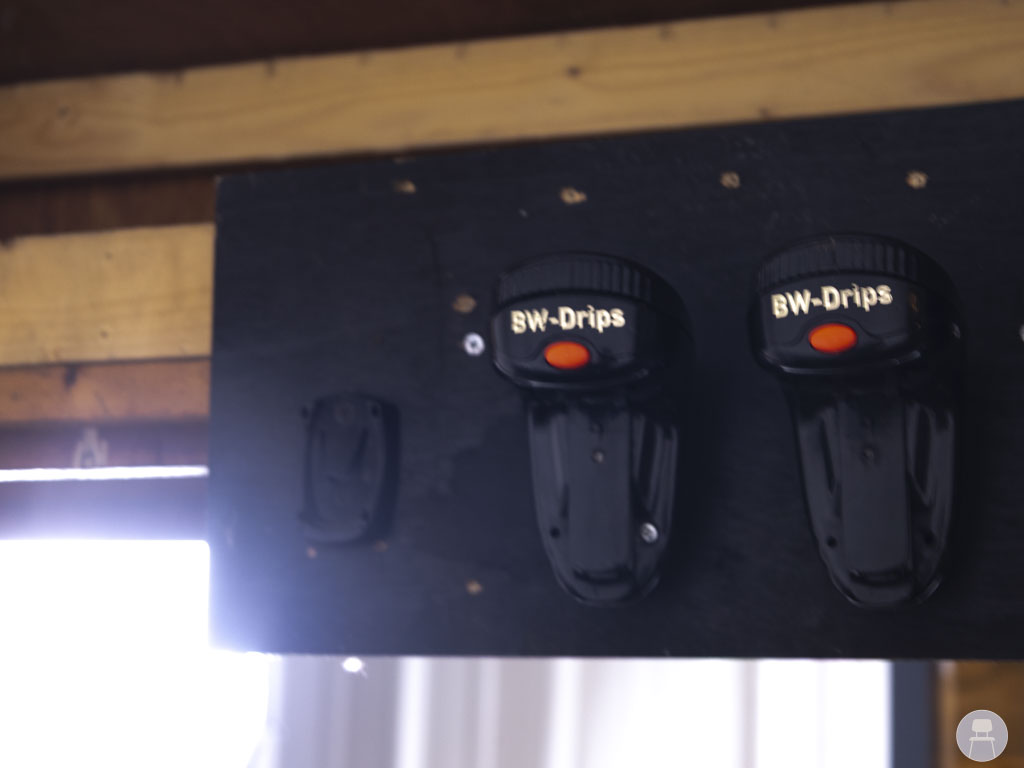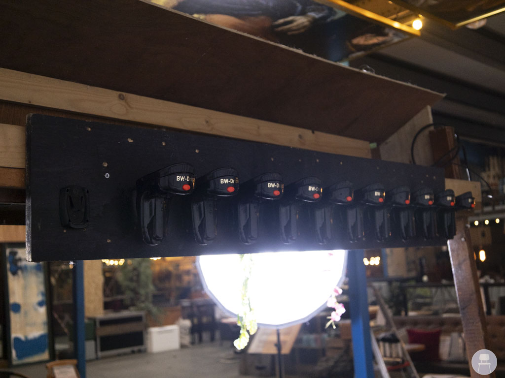 De bar is voorzien van verlichting met twee spots en een LED-lichtstrip, wat zorgt voor extra sfeer tijdens de avonduren. Het werkblad is uitgevoerd in roestvrijstaal, wat praktisch en eenvoudig schoon te maken is.