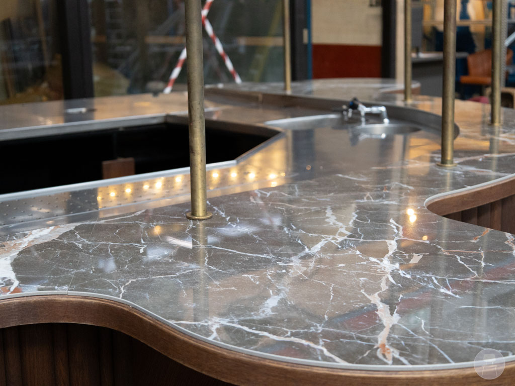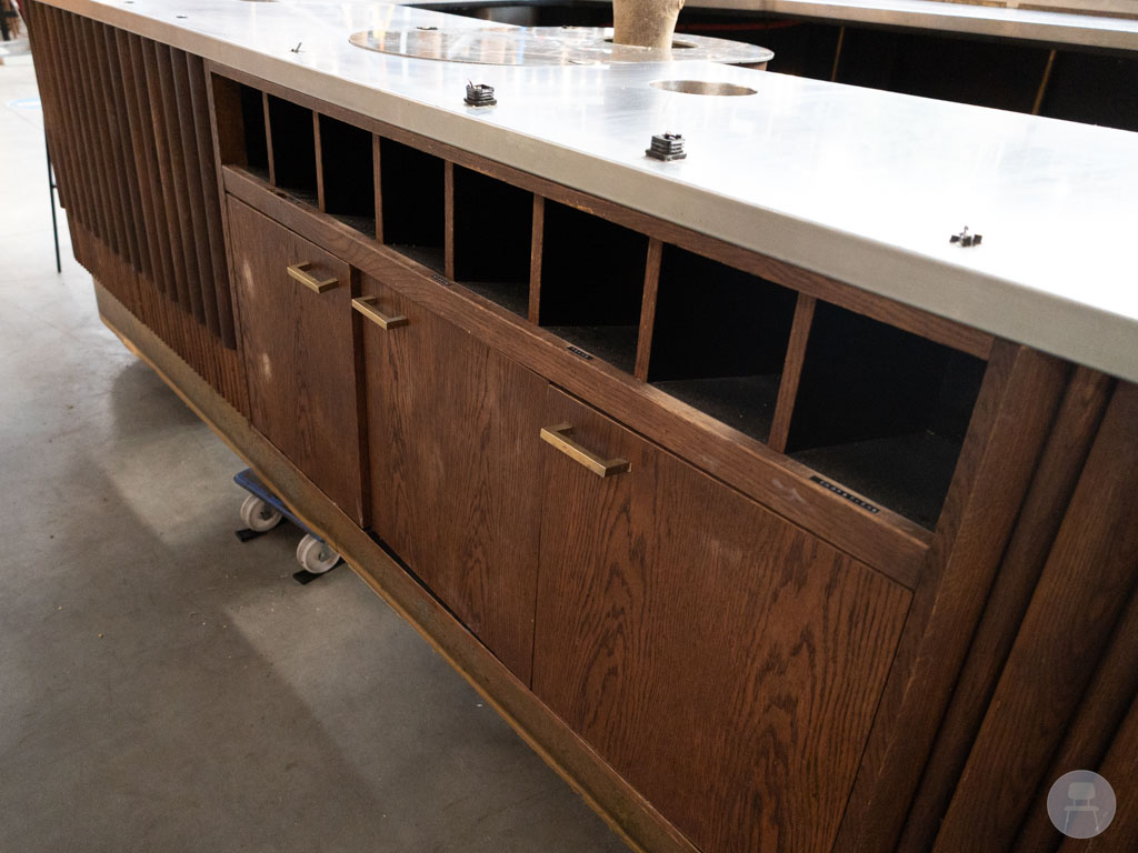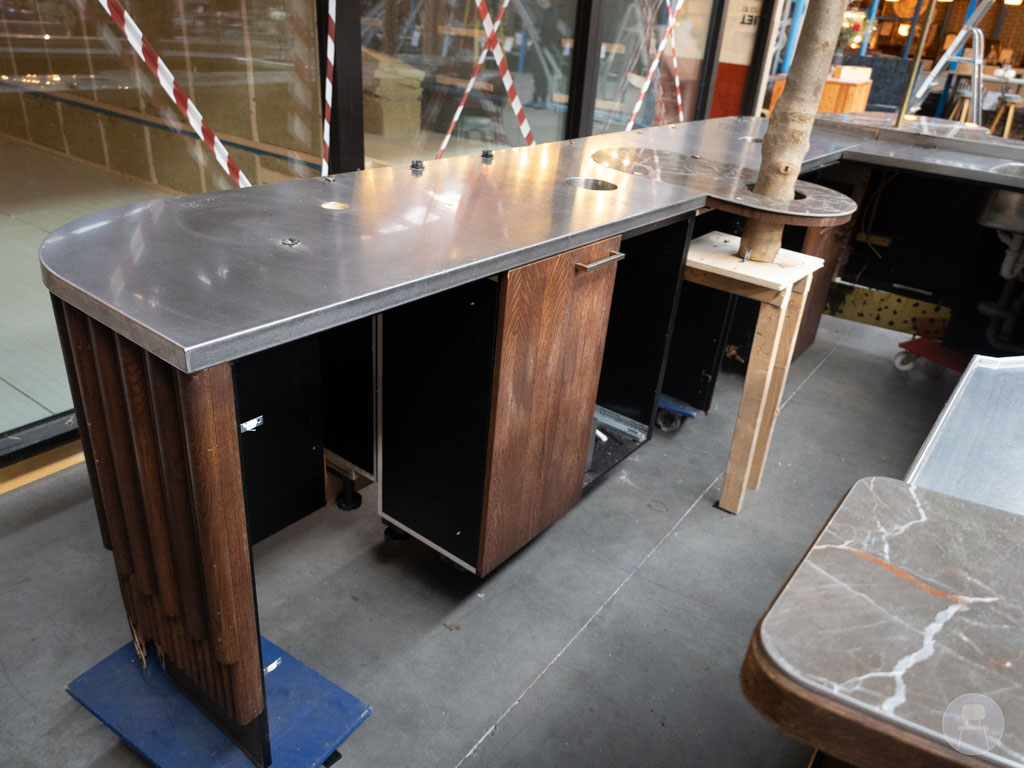 Op de laatste foto’s in de bar op locatie te zien. De optionele gouden achterplaat (371 cm hoog, met uitbreidingsmogelijkheid tot 392 cm) maakt het plaatje helemaal af en is apart verkrijgbaar! Deze achterwand wordt op de achterzijde van de bar bevestigd en heeft ook plankjes om te decoreren. De hoge achterzijde is ideaal om de keuken of voorraad mee af te schermen. Let op: de achterwand is niet inclusief.