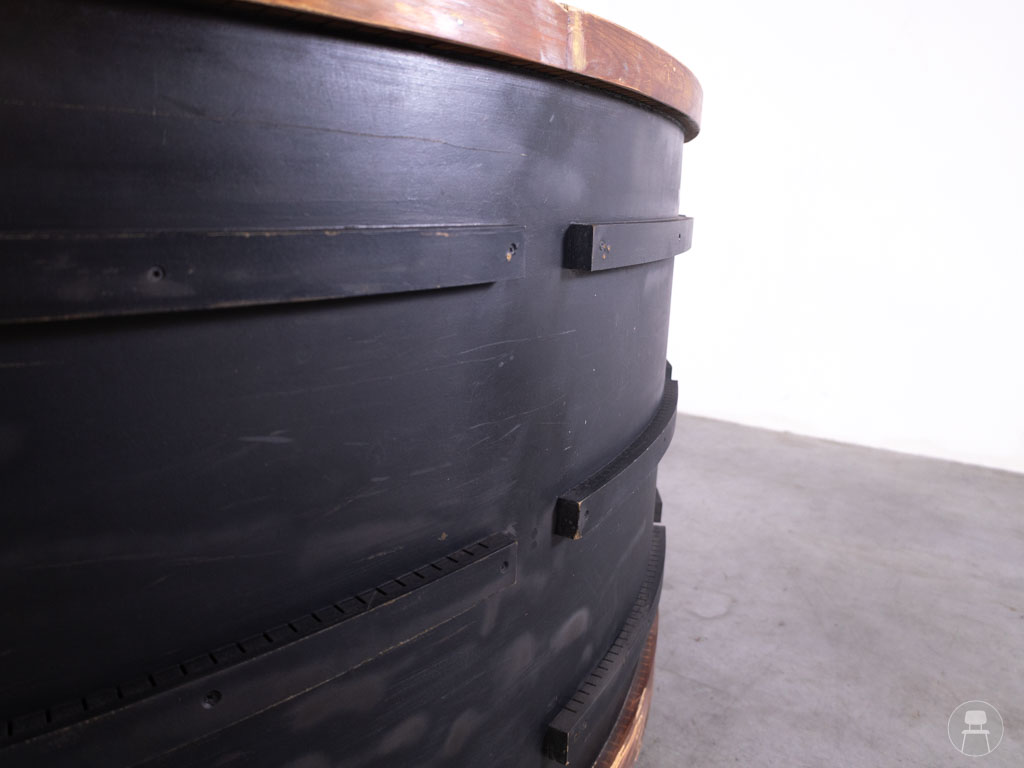 De combinatie van stoer zwart en warm hout geeft deze bar een industriële en ambachtelijke uitstraling. Dankzij de stevige constructie is hij bestand tegen dagelijks gebruik en eenvoudig te combineren met krukken of andere meubels. Tweedehands, dus extra voordelig én duurzaam – maar zéker niet in te leveren op stijl!