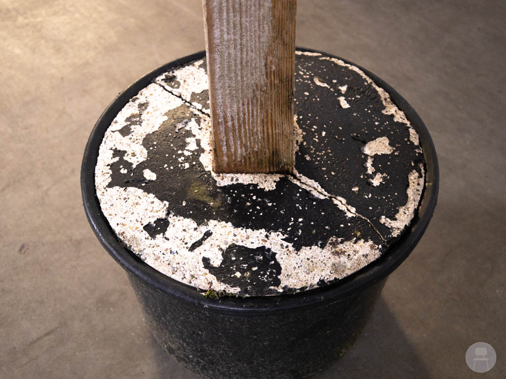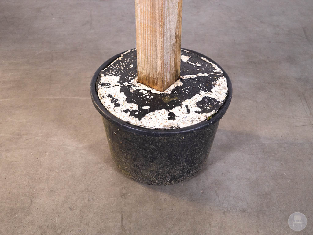 De paal is geplaatst in een betonnen voet, wat zorgt voor extra stabiliteit en stevigheid. Hierdoor is hij goed inzetbaar op terrassen of andere buitenlocaties binnen de horeca waar een robuuste en functionele lichtoplossing gewenst is. Door de eenvoudige uitvoering is deze lichtpaal makkelijk te combineren met verschillende soorten prik- en lichtkabels en past hij goed binnen zowel een industrieel als een meer basic terrasconcept.