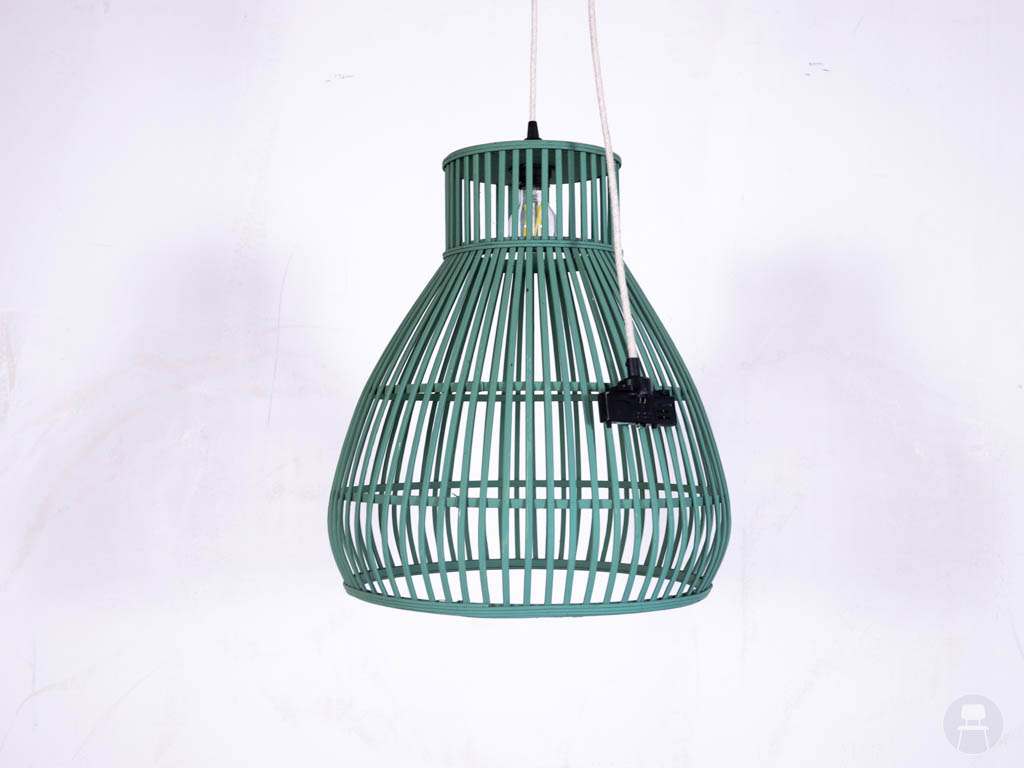 De lamp is vervaardigd uit hout en afgewerkt in een frisse groene kleur. Het open lattenontwerp zorgt voor een mooi lichtspel en maakt deze lamp ideaal voor sfeervolle horecaomgevingen zoals restaurants, cafés en terrassen.