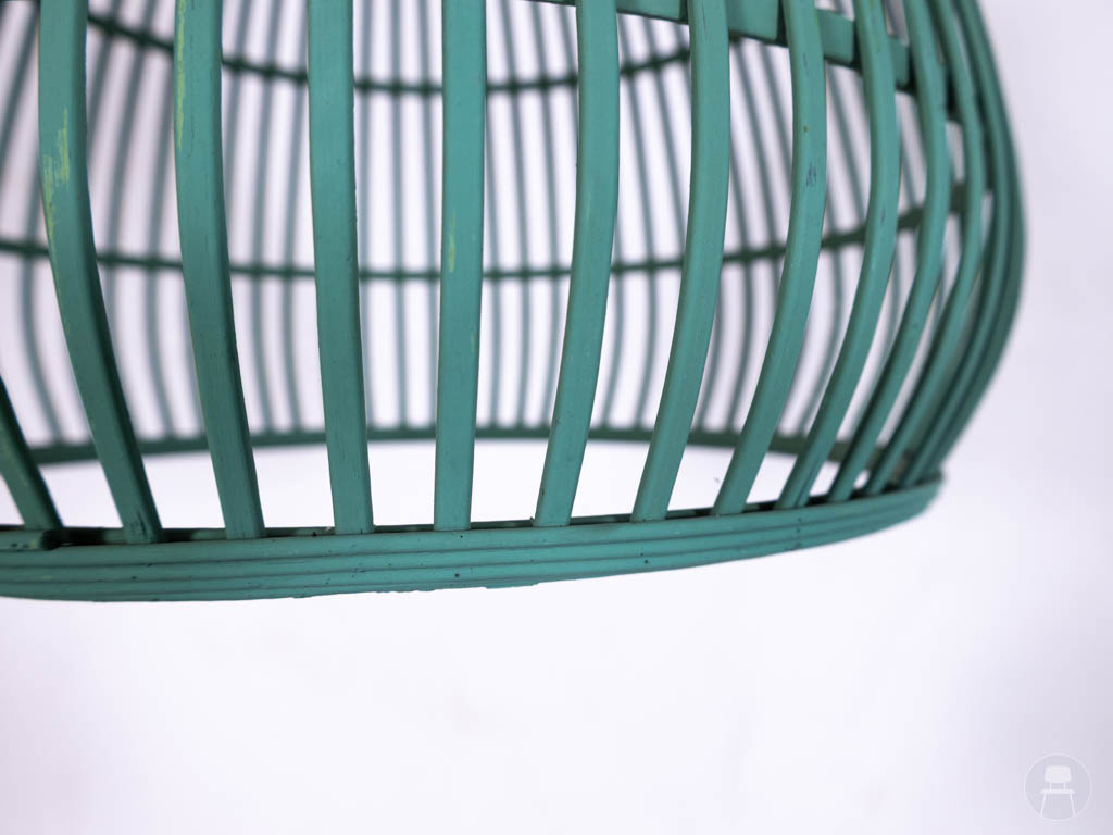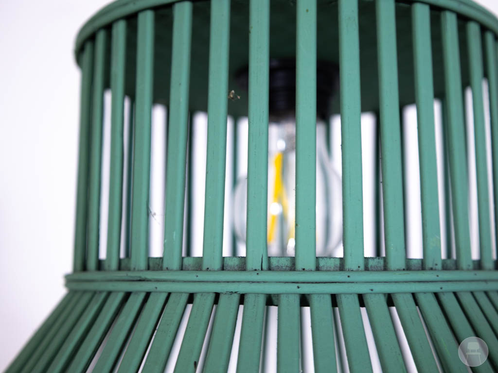 Let op: deze hanglamp vertoont gebruikerssporen, wat het een karaktervolle en betaalbare keuze maakt binnen tweedehands horeca verlichting. Dankzij het gebruik van hout en de unieke groene afwerking blijft dit een echte eyecatcher in ieder interieur.
