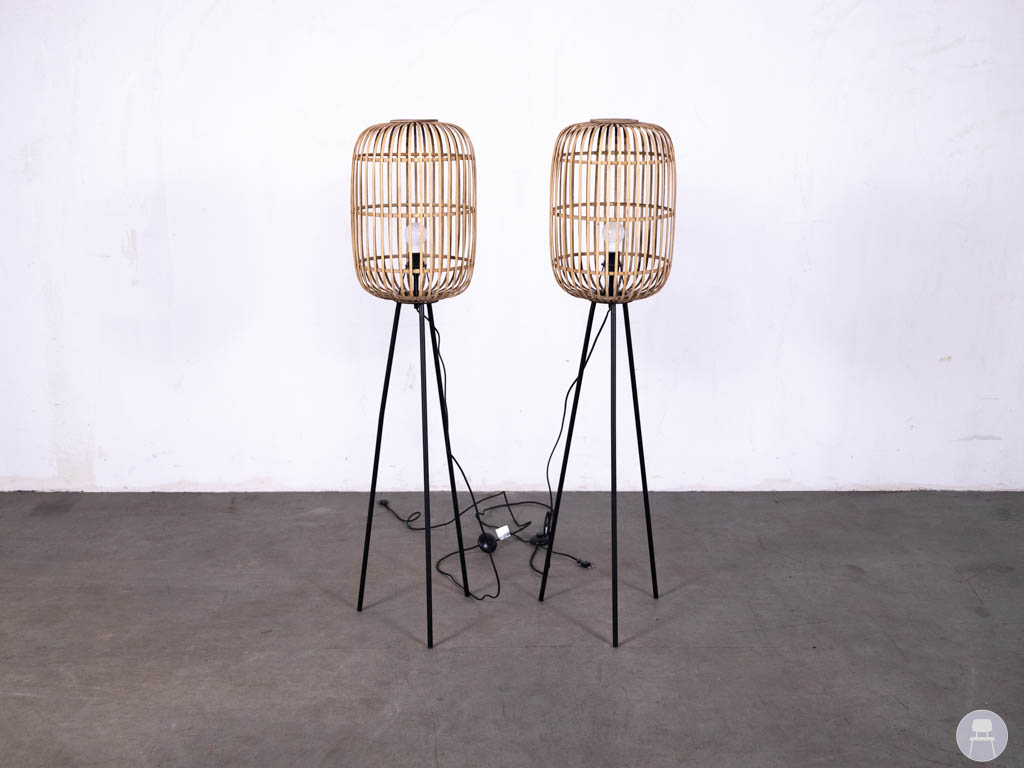 1 set 2 stuks Vloerlamp Rotan 140cm hoog bestaat uit 2 stijlvolle staande lampen met een warme en natuurlijke uitstraling. Dankzij de combinatie van een rotan lampenkap en een slank metalen onderstel passen deze lampen perfect in zowel moderne als sfeervolle interieurs.
