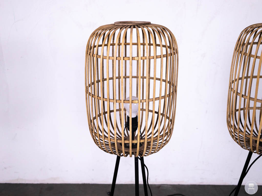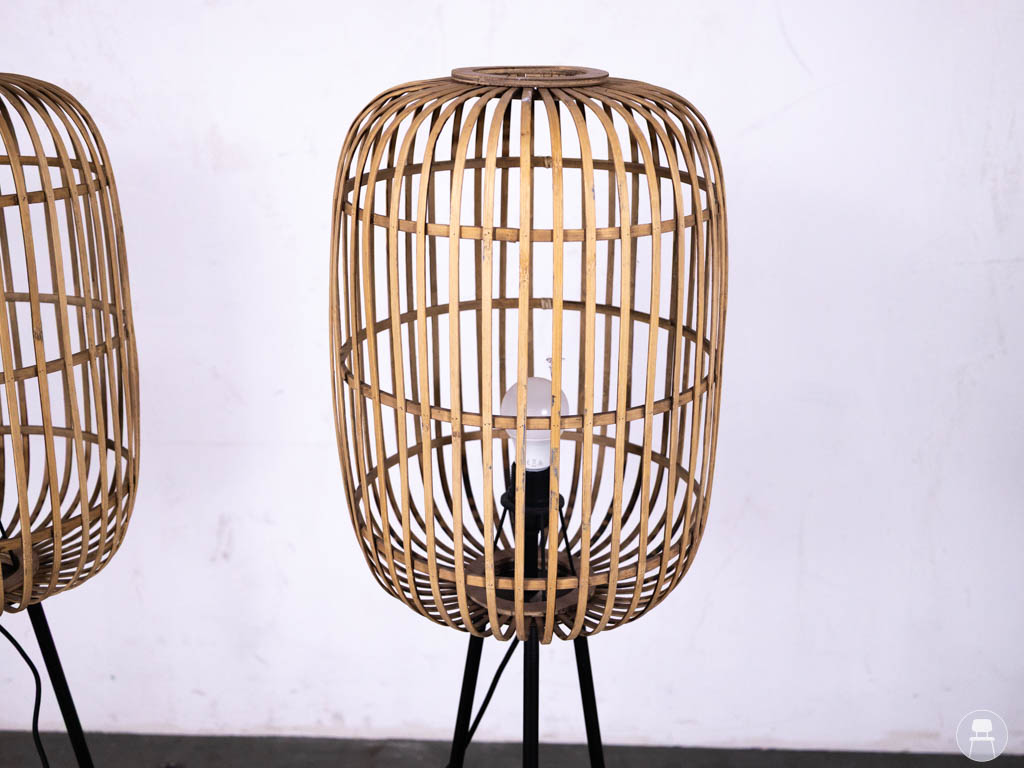 De gevlochten rotan kap zorgt voor een speels lichteffect en een gezellige ambiance in de ruimte. Met een hoogte van circa 140 cm zijn deze vloerlampen ideaal als sfeerverlichting in een horecagelegenheid, lounge of woonkamer.