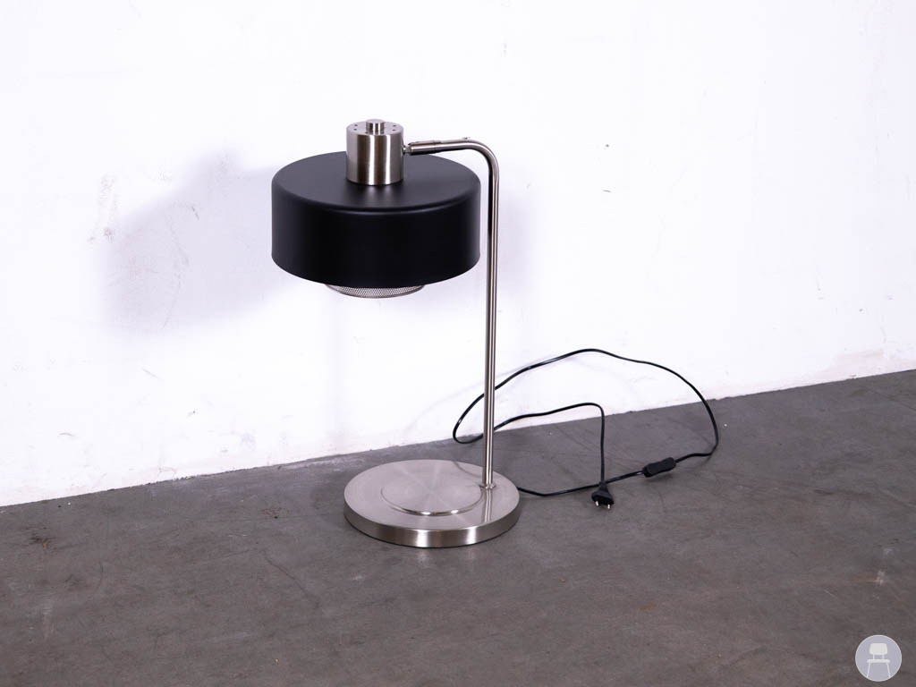 Tafellamp Rosalie 60cm hoog is een stijlvolle en moderne lamp die perfect past binnen een horeca-interieur zoals een restaurant, hotel, café of lounge. De tafellamp heeft een strak ontwerp met een metalen voet en arm in een zilverkleurige afwerking. De zwarte lampenkap geeft de lamp een elegante en tijdloze uitstraling.