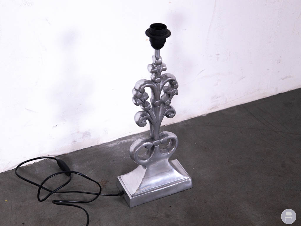 Tafellamp Zilver 50cm hoog is een elegante en decoratieve tafellamp met een klassieke uitstraling. De lamp heeft een sierlijke zilverkleurige voet met ornamenten, wat zorgt voor een stijlvolle en luxe look in elk interieur.
