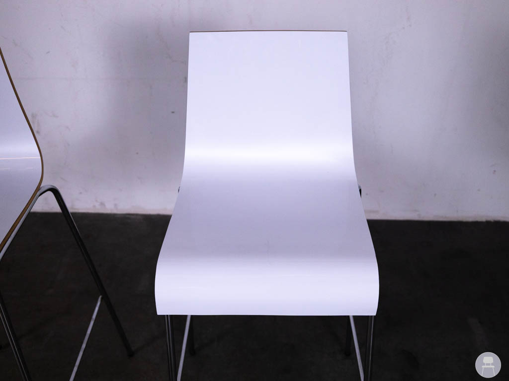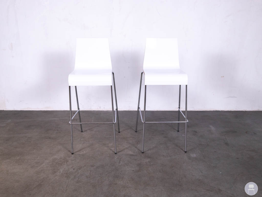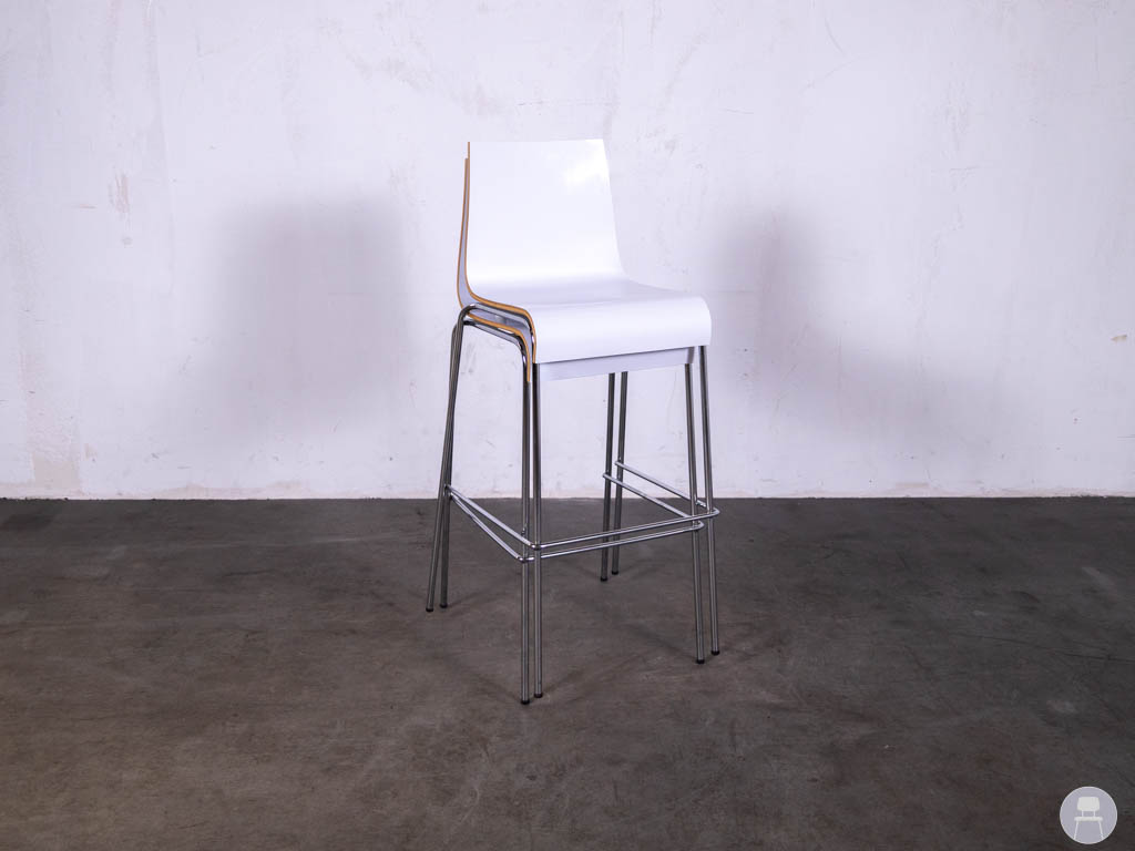 De barkrukken hebben een comfortabele zitting en rugleuning in wit kunststof, gecombineerd met een slank metalen onderstel. Dit geeft de barkruk Twan een moderne uitstraling die goed past in cafés, restaurants of eigentijdse horecainterieurs.