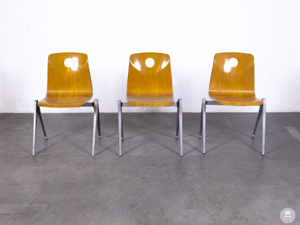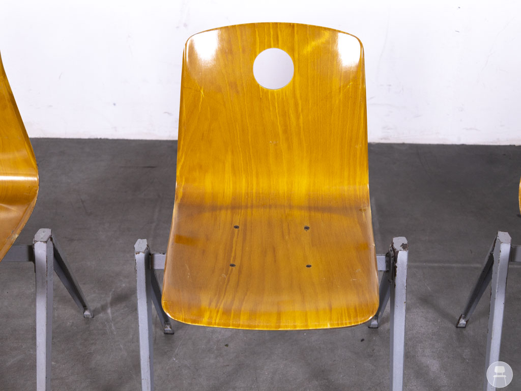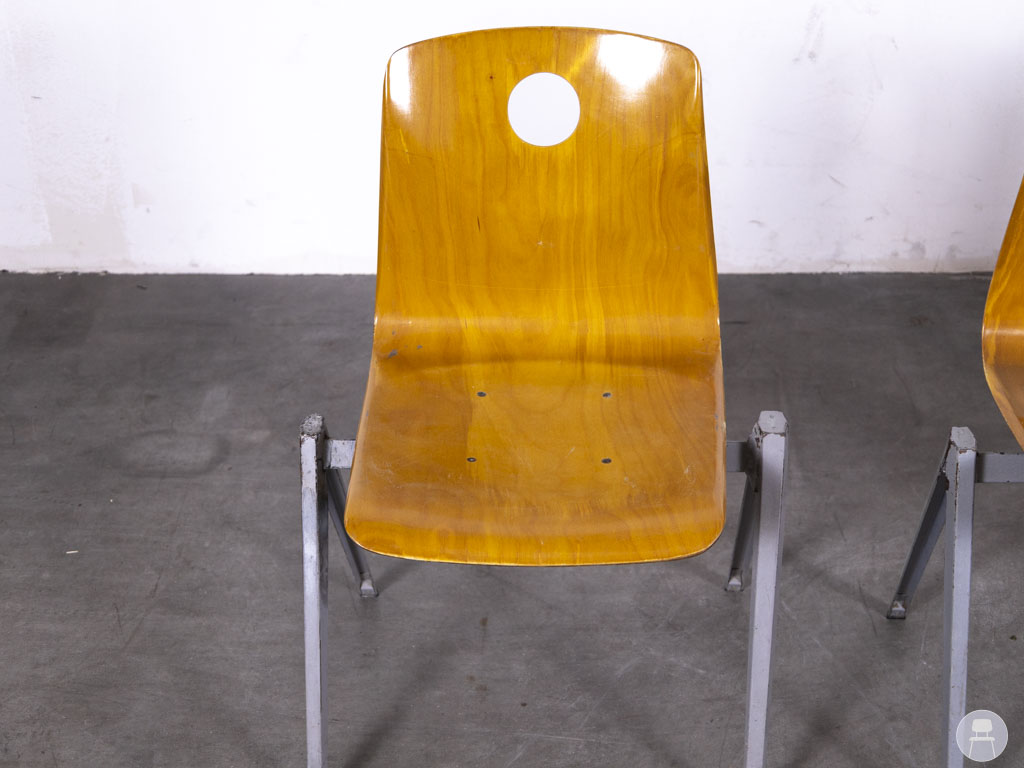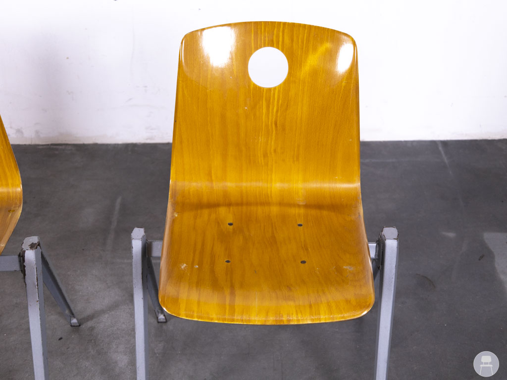 De schoolstoelen zijn stapelbaar, waardoor ze eenvoudig op te bergen zijn.  Ideaal voor wisselende opstellingen in bijvoorbeeld horeca, scholen, kantines of vergaderruimtes. Er zijn gebruikssporen aanwezig, wat deze tweedehands stoelen een authentieke, vintage look geeft. Deze set van 3 stuks is een uitstekende keuze voor wie op zoek is naar degelijk en karaktervol tweedehands horecameubilair van een gerenommeerd merk als Galvanitas.