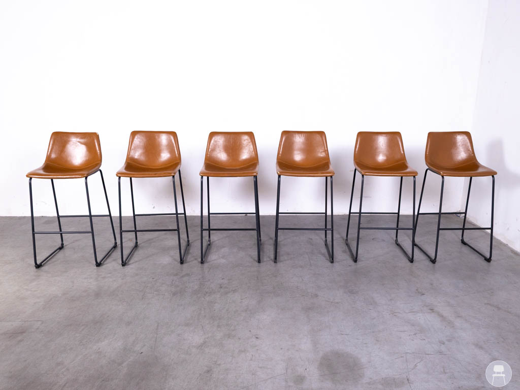 1 set 6 stuks Barkruk Charlie cognac bruin