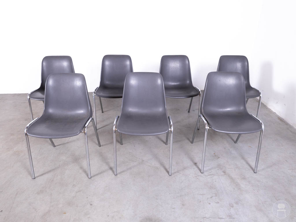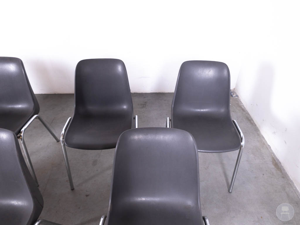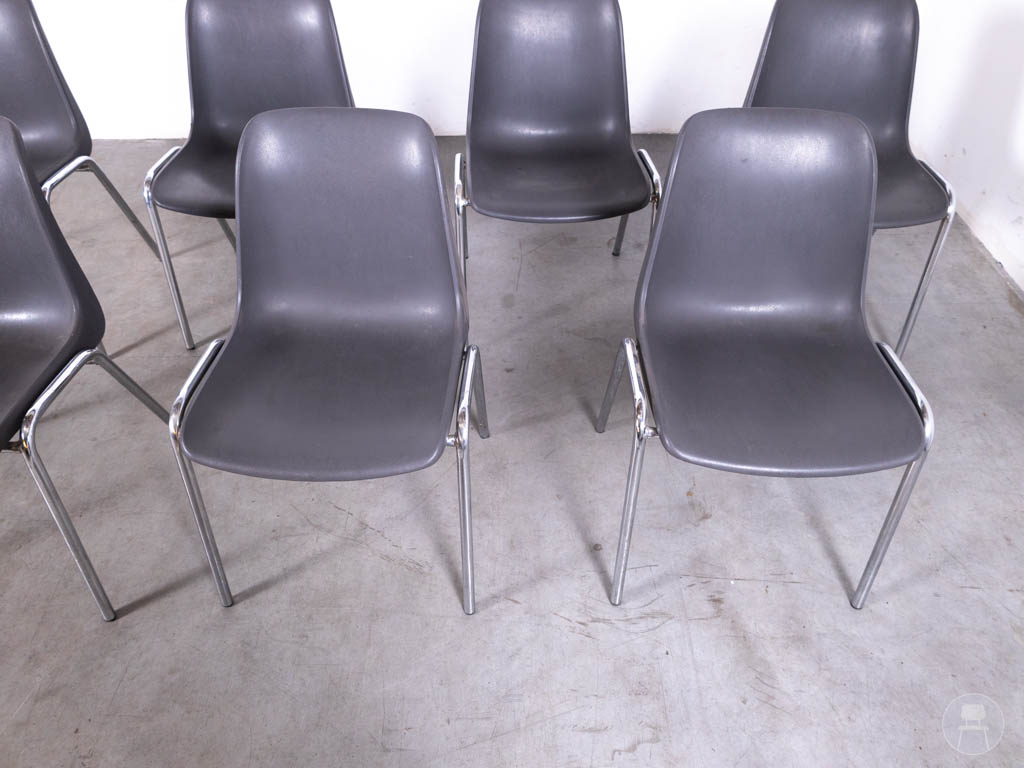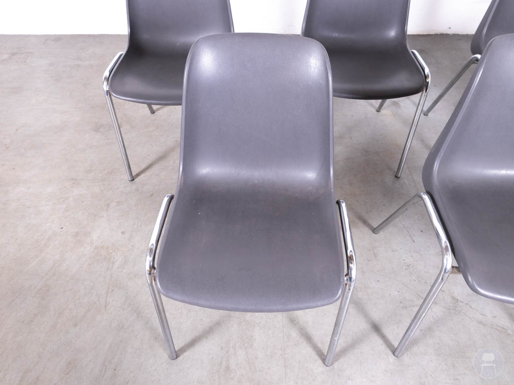 1 set 7 stuks Stapelstoel Kantine donker grijs