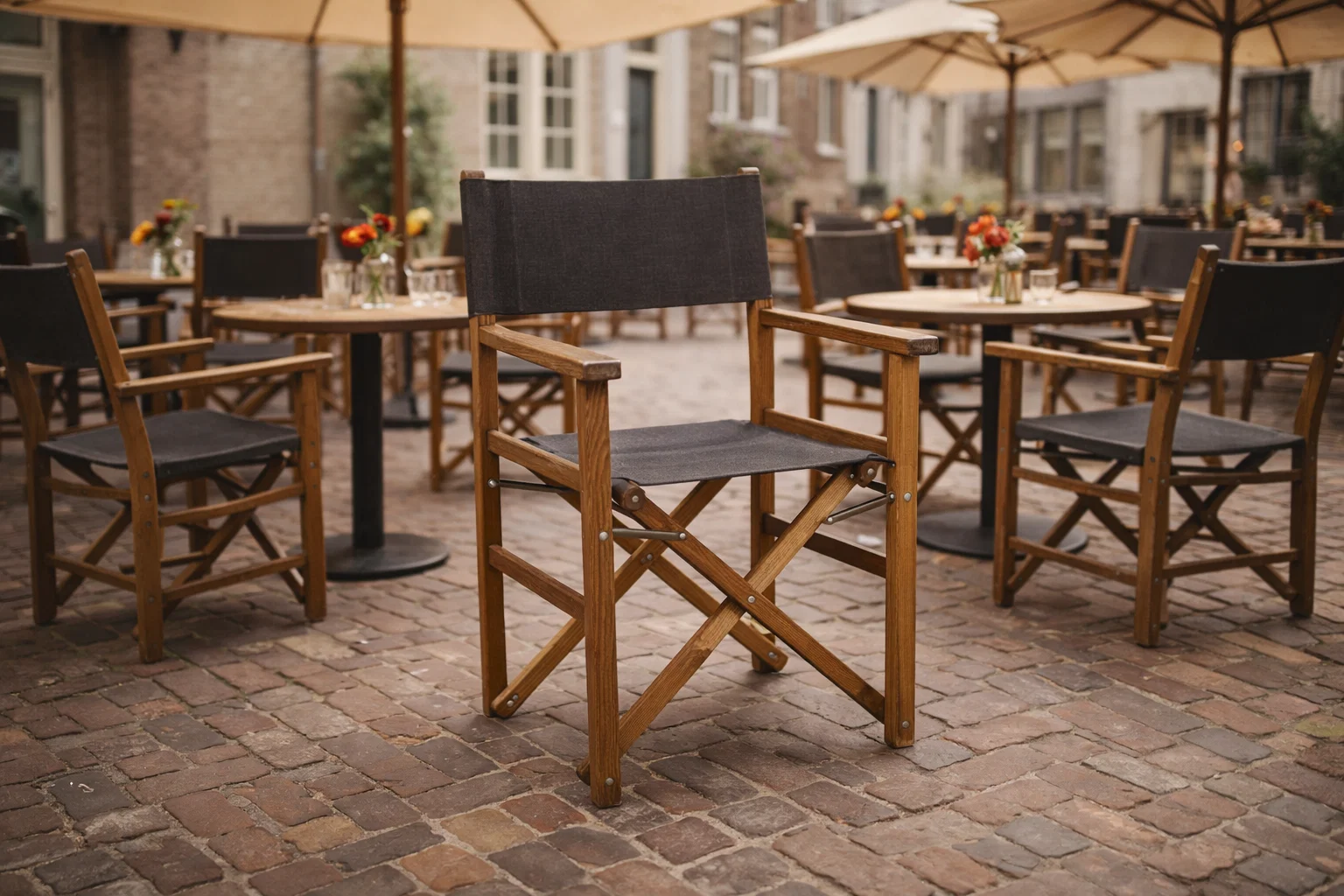 Regisseursstoel Milaan donkerbruin NIEUW is een stijlvolle en functionele toevoeging voor elke buitenruimte. Met een stevig, geïmpregneerd beukenhouten frame en een bruin textiele zitting en rugleuning is deze stoel niet alleen comfortabel, maar ook weersbestendig. Dankzij het handige verticale inklapmechanisme is de stoel eenvoudig op te bergen en mee te nemen. Ideaal voor terrassen, tuinen en buitenactiviteiten, biedt de regisseursstoel Venice zowel duurzaamheid als een moderne uitstraling. Dit model is verkrijgbaar in meerdere kleuren!