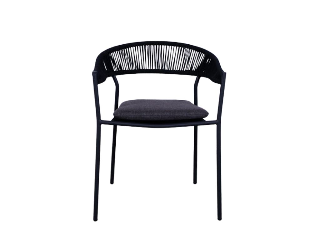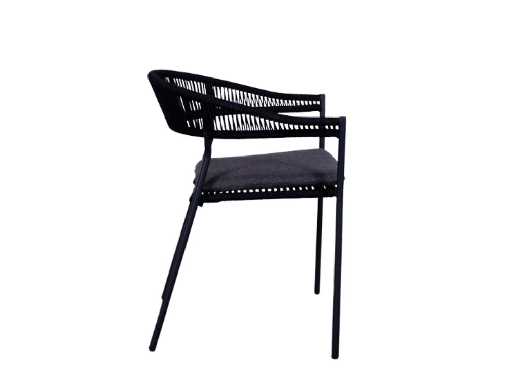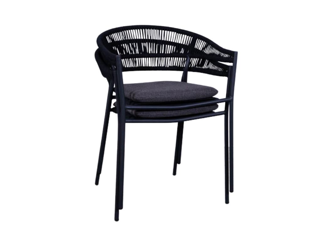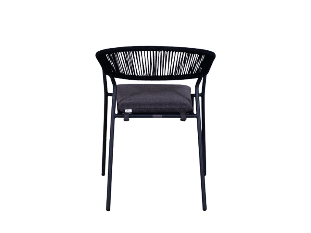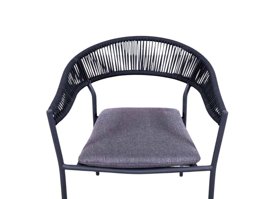 De gevlochten rugleuning geeft de terrasstoel een eigentijdse en luchtige uitstraling, terwijl het afneembare kussen extra zitcomfort biedt en eenvoudig te reinigen is. Dankzij het stapelbare ontwerp is de Finn bovendien praktisch in opslag en onderhoud. Met zijn strakke lijnen en antracietkleurige afwerking past deze stoel perfect in zowel moderne als industriële buiteninrichtingen. Een stijlvolle en duurzame keuze voor elk terras dat kwaliteit en comfort wil uitstralen.