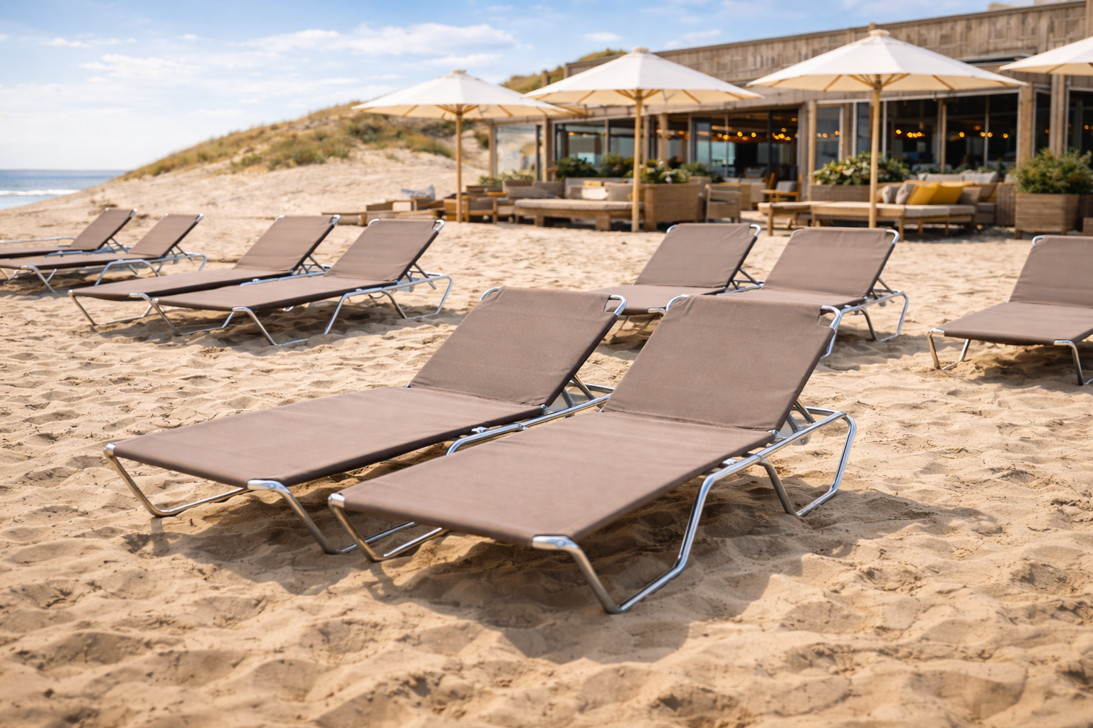 Door de combinatie van aluminium en textileen is dit ligbed perfect geschikt voor intensief buitengebruik binnen de horeca. Bovendien betreft dit een nieuw product, dus direct klaar voor gebruik zonder slijtage.