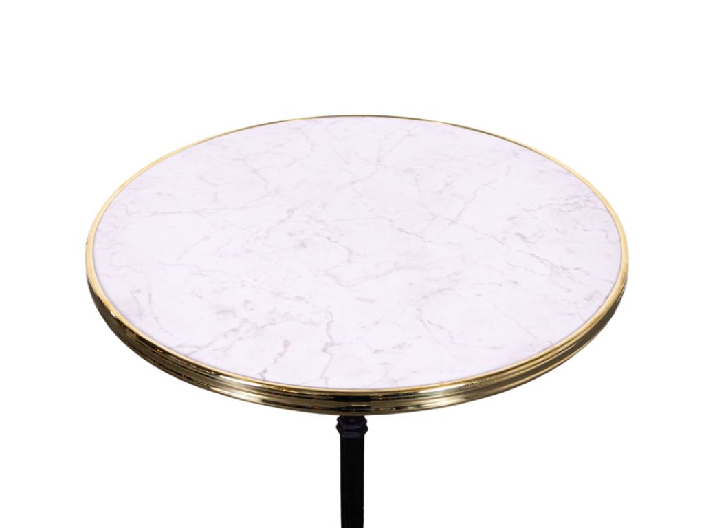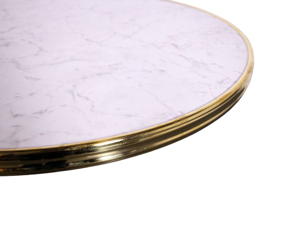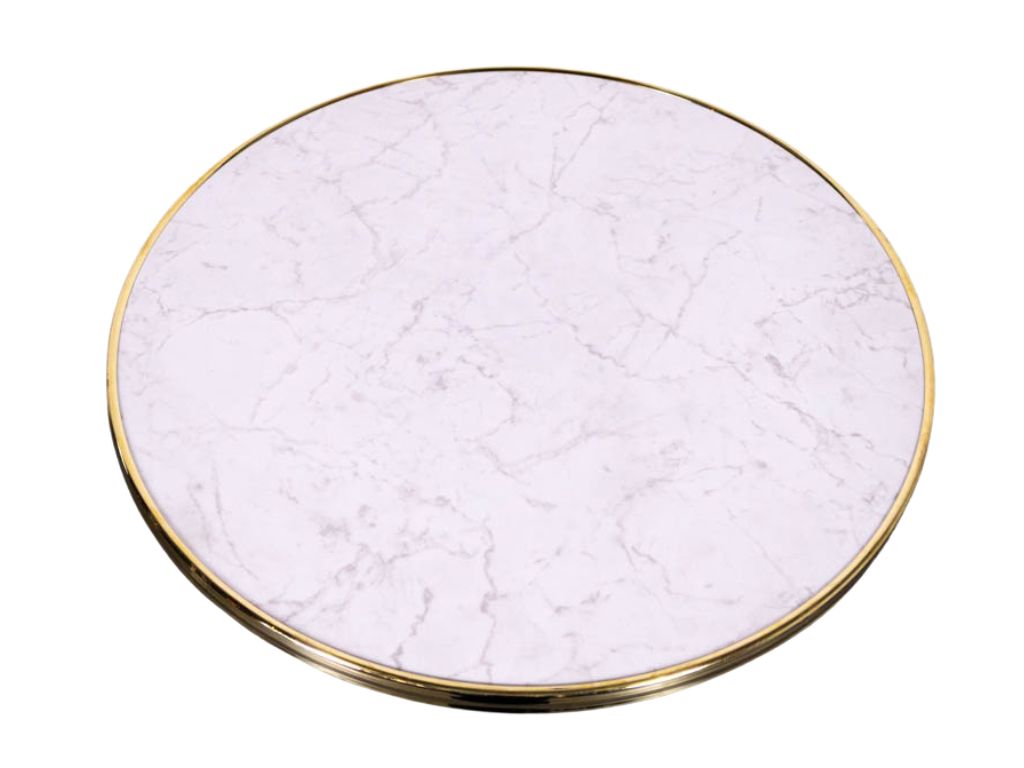 Tafelblad buiten Topalit marmer wit messing ring 60cm rond NIEUW is dé eyecatcher voor jouw terras of horecagelegenheid. Dit splinternieuwe blad combineert de stijlvolle uitstraling van wit marmer met de duurzaamheid van Topalit, waardoor het bestand is tegen zon, regen en intensief gebruik. De glanzende messing rand zorgt voor een luxueuze afwerking die je gasten direct zal opvallen.