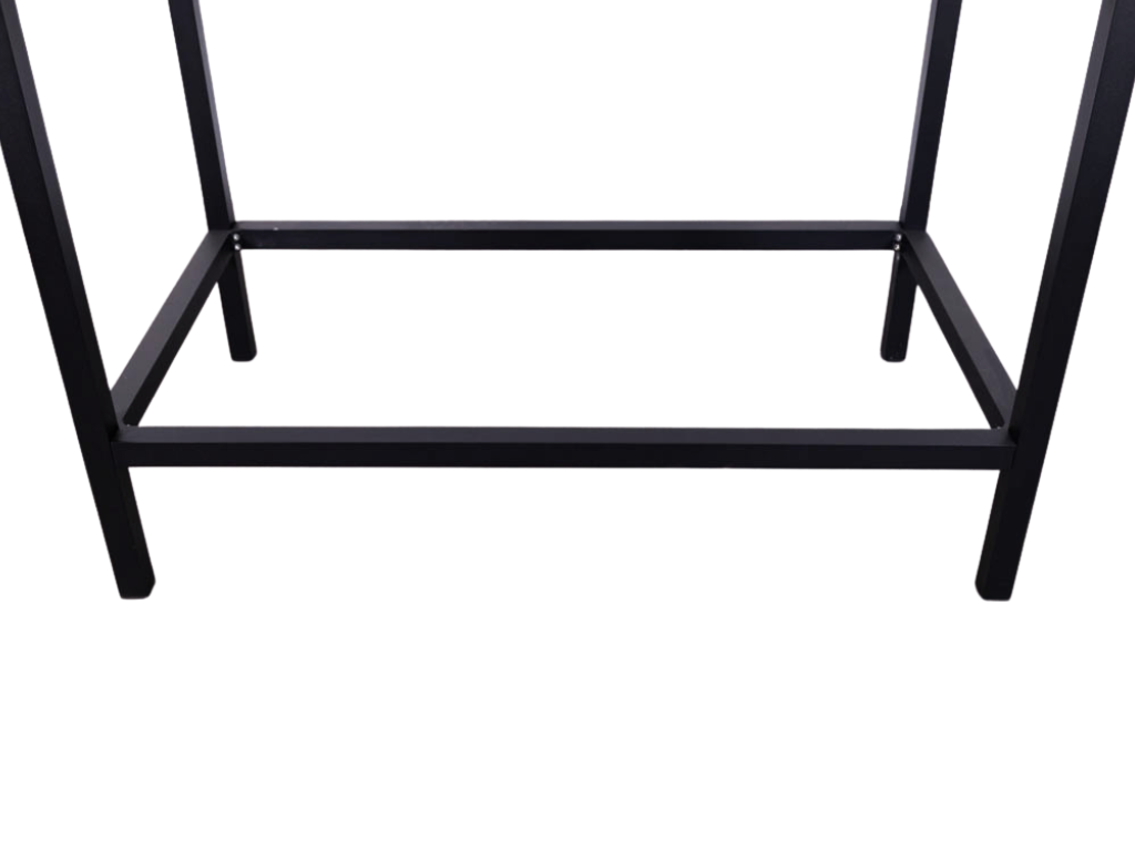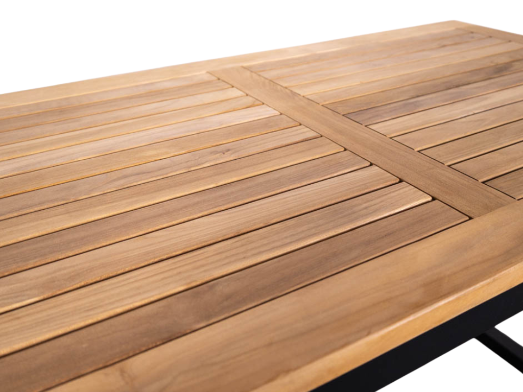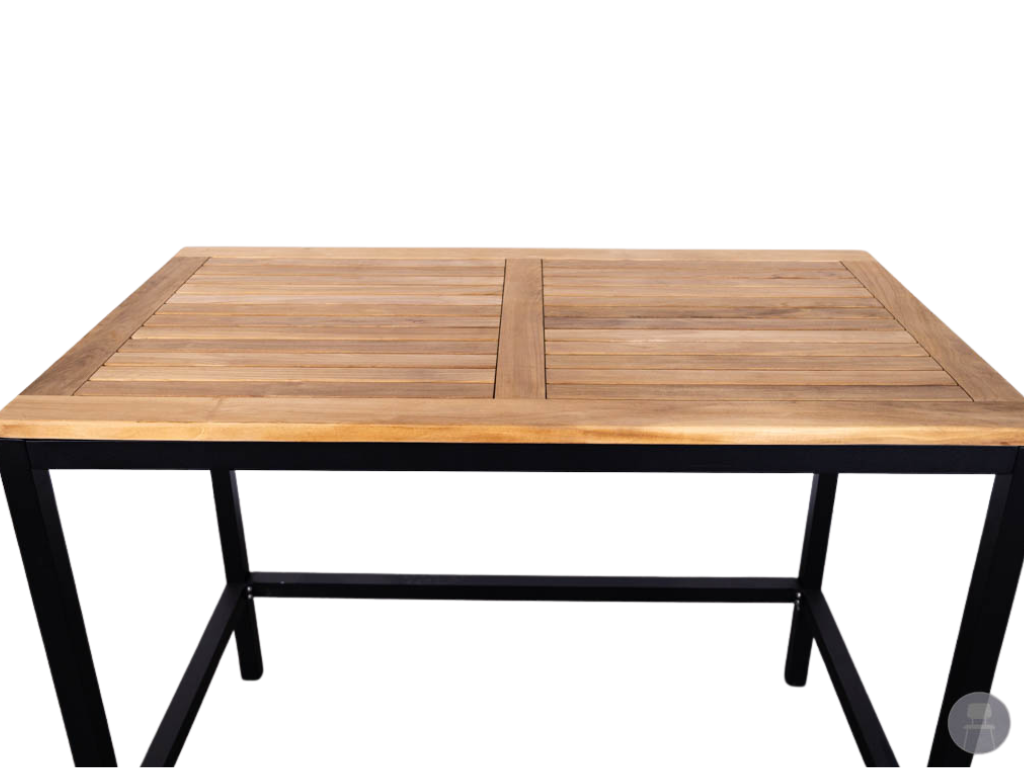 Het tafelblad is uitgevoerd in hoogwaardig teak hout, wat zorgt voor een warme, natuurlijke uitstraling en uitstekende weerbestendigheid. In combinatie met het stevige stalen onderstel in zwart krijgt de tafel een industriële en moderne look, ideaal voor intensief gebruik in de horeca. Dankzij de duurzame materialen en solide constructie is deze statafel zeer geschikt voor buitengebruik. Dit exemplaar is bovendien nieuw, wat garant staat voor optimale kwaliteit en een frisse uitstraling.