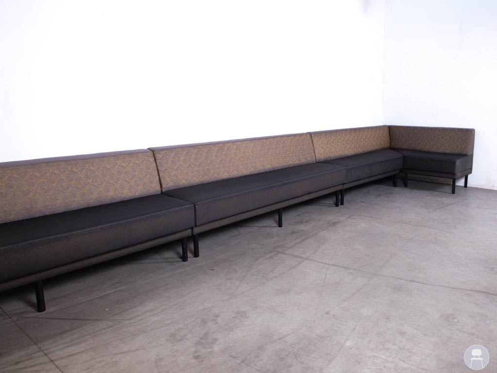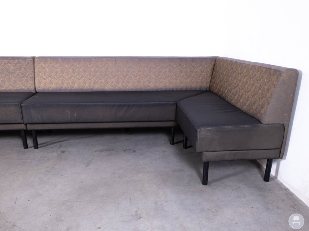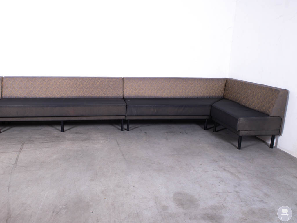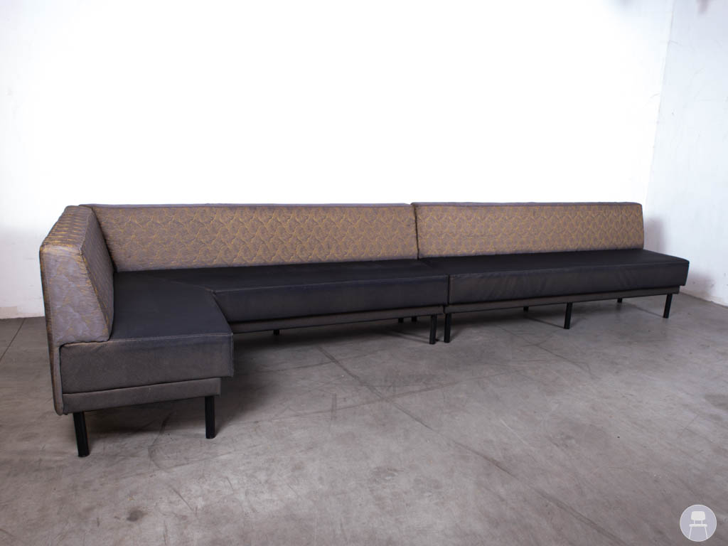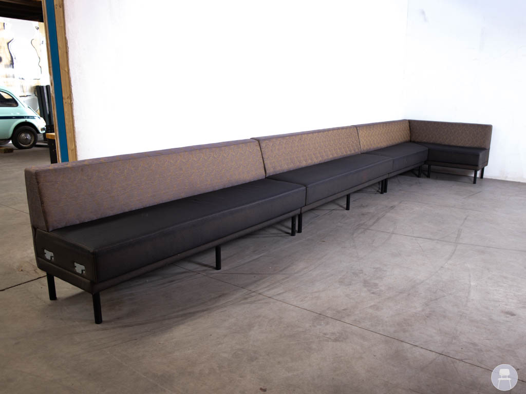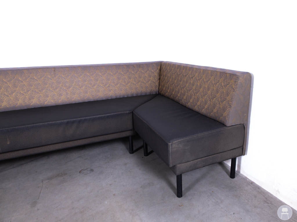 Met een totale lengte van 1050 cm biedt deze horecabank veel zitplaatsen. Let op: de bank staat op de foto in 2 delen weergegeven vanwege het formaat, maar vormt samen één grote hoekopstelling.