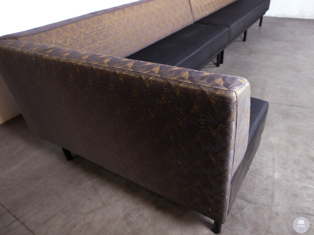 Deze bank is gebruikt en vertoont lichte gebruikssporen, passend bij intensief horecagebruik. Een ideale keuze voor wie op zoek is naar een grote, comfortabele en representatieve zitoplossing.