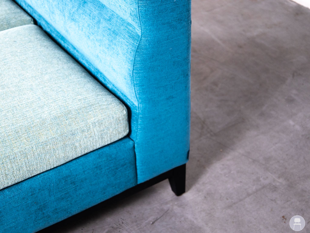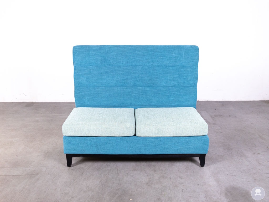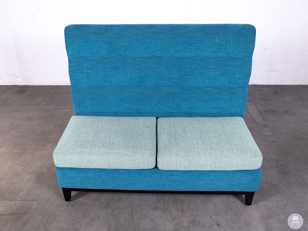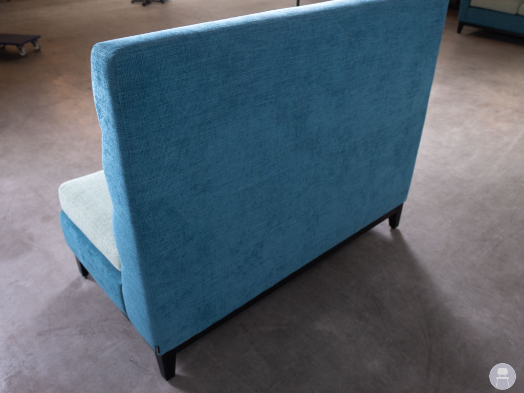 Horecabank Cave B blauw Satelliet 140cm is een frisse en opvallende verschijning dankzij de heldere blauwe bekleding en contrasterende lichtblauwe zitkussens. De hoge rugleuning met horizontale stiknaden zorgt niet alleen voor een strakke uitstraling, maar biedt ook extra zitcomfort en een gevoel van privacy.