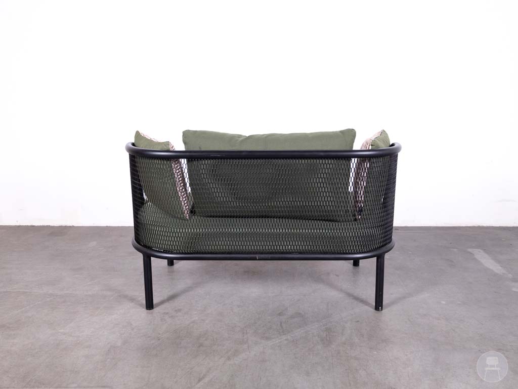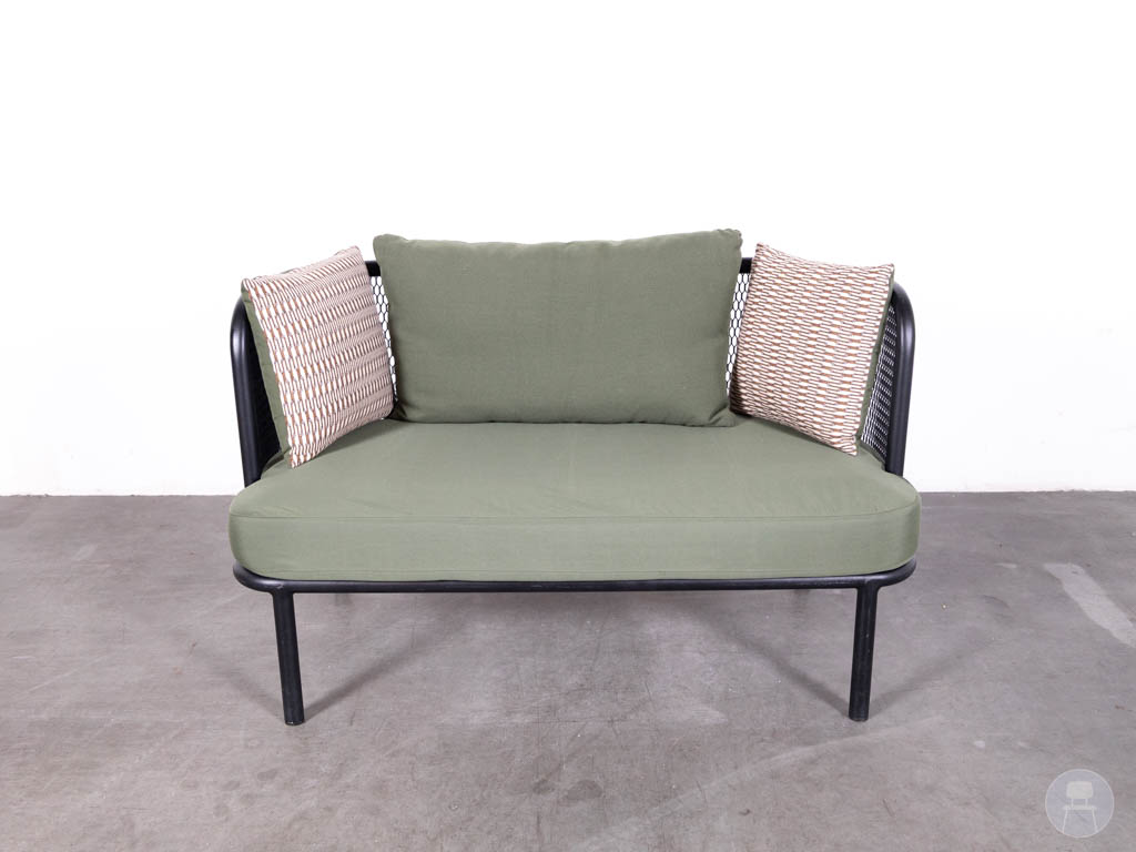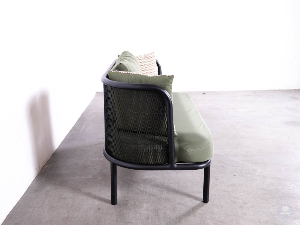 Terrasbank Terra 2-zits groen Satelliet 140cm is de perfecte combinatie van comfort, stijl en weerbestendigheid. Deze moderne loungebank van het kwaliteitsmerk Satelliet heeft een stevig zwart metalen frame en is afgewerkt met comfortabele groene kussens en decoratieve zijkussens. Het open ontwerp en de luchtige uitstraling maken deze bank ideaal voor sfeervolle terrassen, patio’s of rooftop bars.