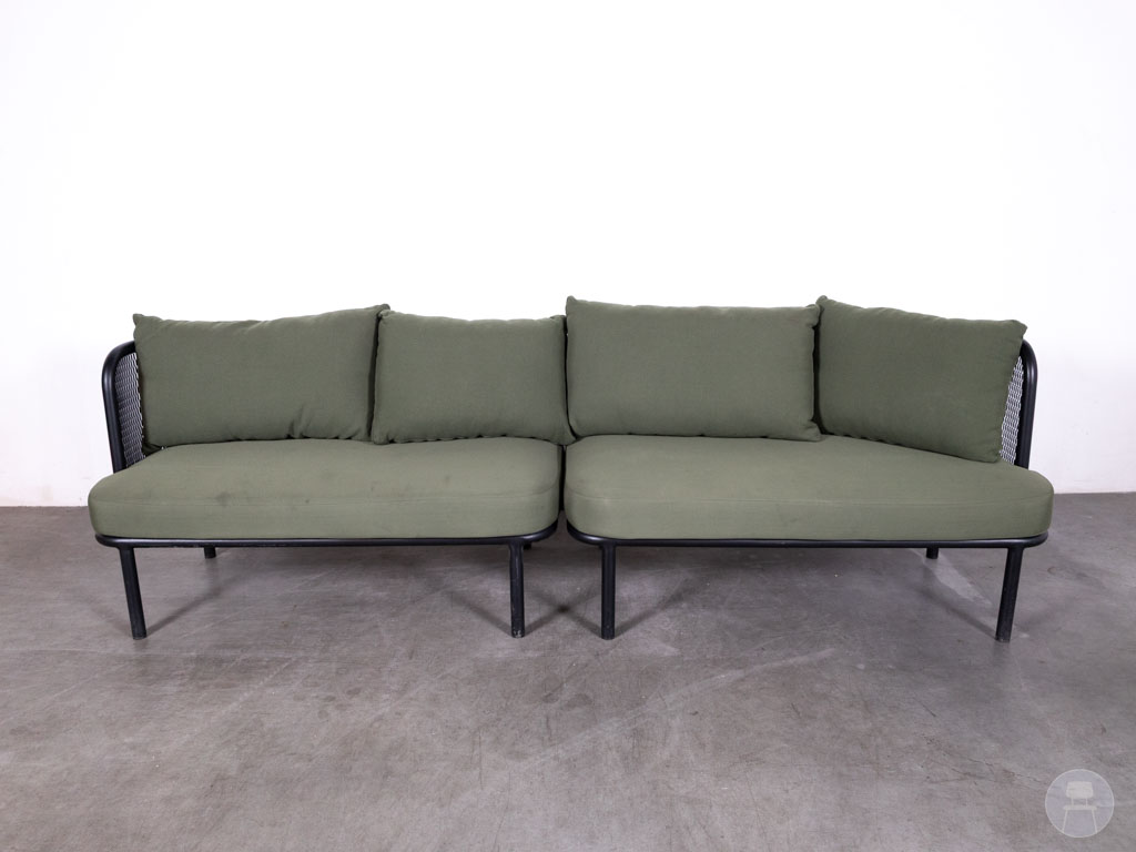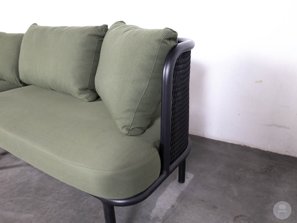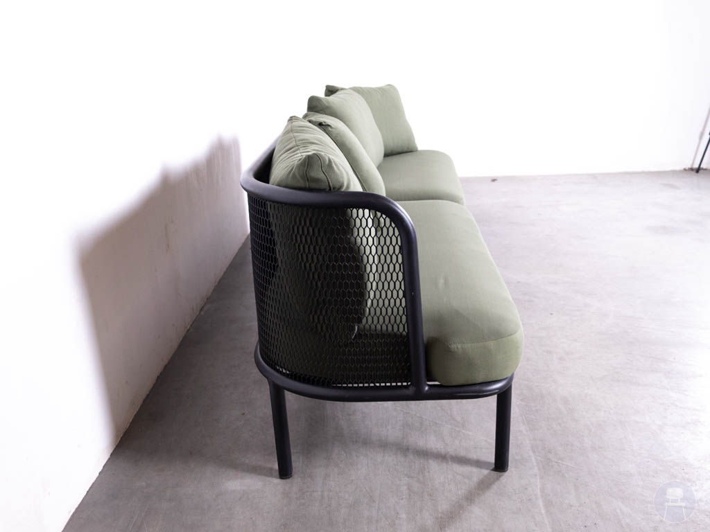 Terrasbank Terra BA groen Satelliet 285cm is de blikvanger voor elk horecaterras dat luxe en comfort wil uitstralen. De combinatie van het stevige zwarte aluminum frame en de olijfgroene kussens zorgt voor een moderne, maar warme uitstraling die perfect past bij zowel trendy stadsbalkons als landelijke buitenlocaties.