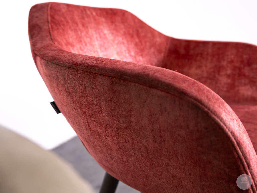 De zittingen zijn ergonomisch gevormd en bekleed met een combinatie van stof en skai leer, wat zorgt voor comfort én praktisch onderhoud. Het onderstel bestaat uit een mix van houten en metalen frames, elk voorzien van een voetensteun voor extra zitgemak.