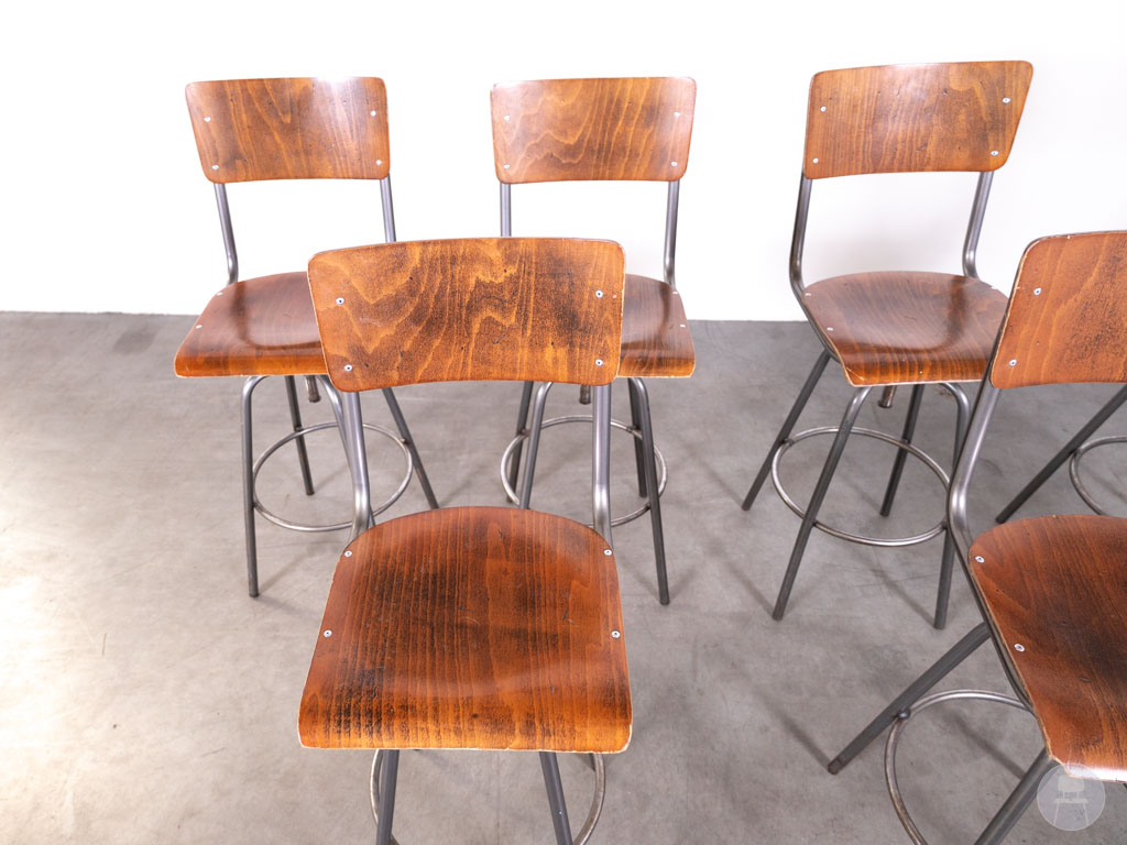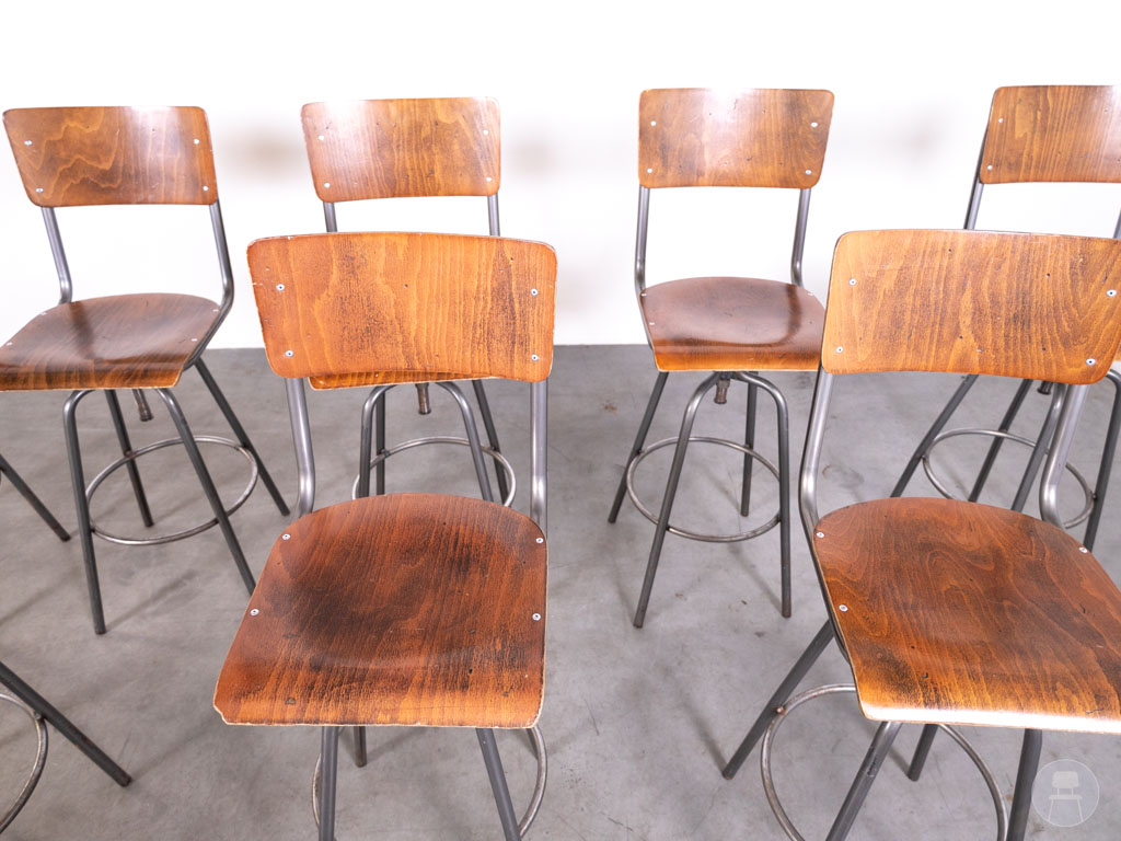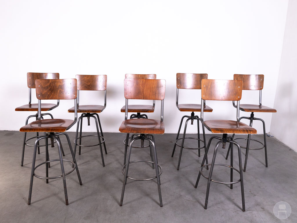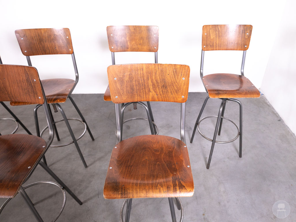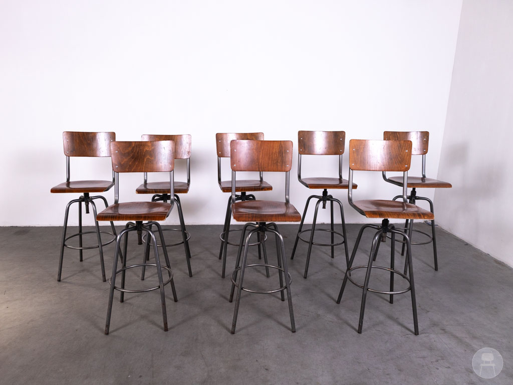 1 set 8 stuks Barkruk Student Ger draaibaar bruin
