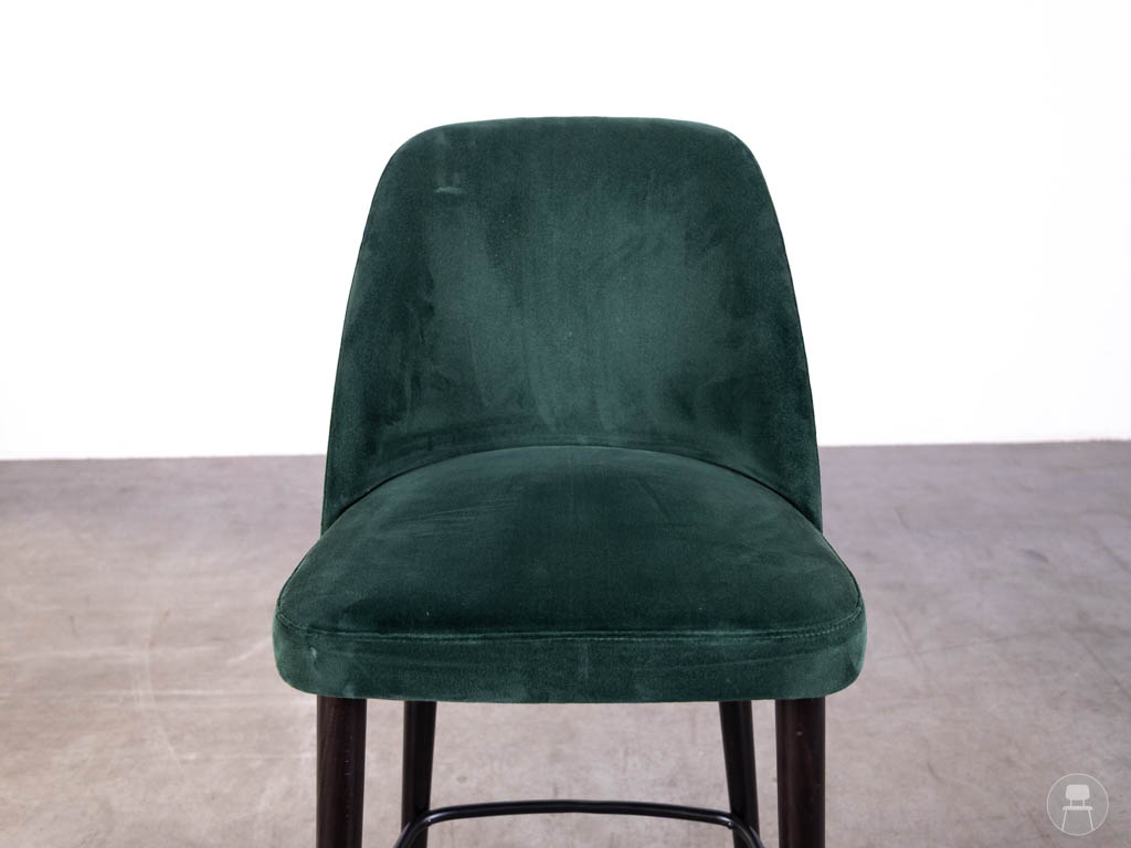De extra donkere beukenhouten poten geven de kruk een diepe, warme uitstraling, die prachtig contrasteert met het rijke velvet. De zwarte stalen voetsteun maakt het geheel compleet en biedt extra steun en stabiliteit. En als klap op de vuurpijl komt deze barkruk uit de collectie van Satelliet – hét topmerk in horeca meubilair. Tweedehands, maar als nieuw én direct klaar voor gebruik. Mis deze kans niet!