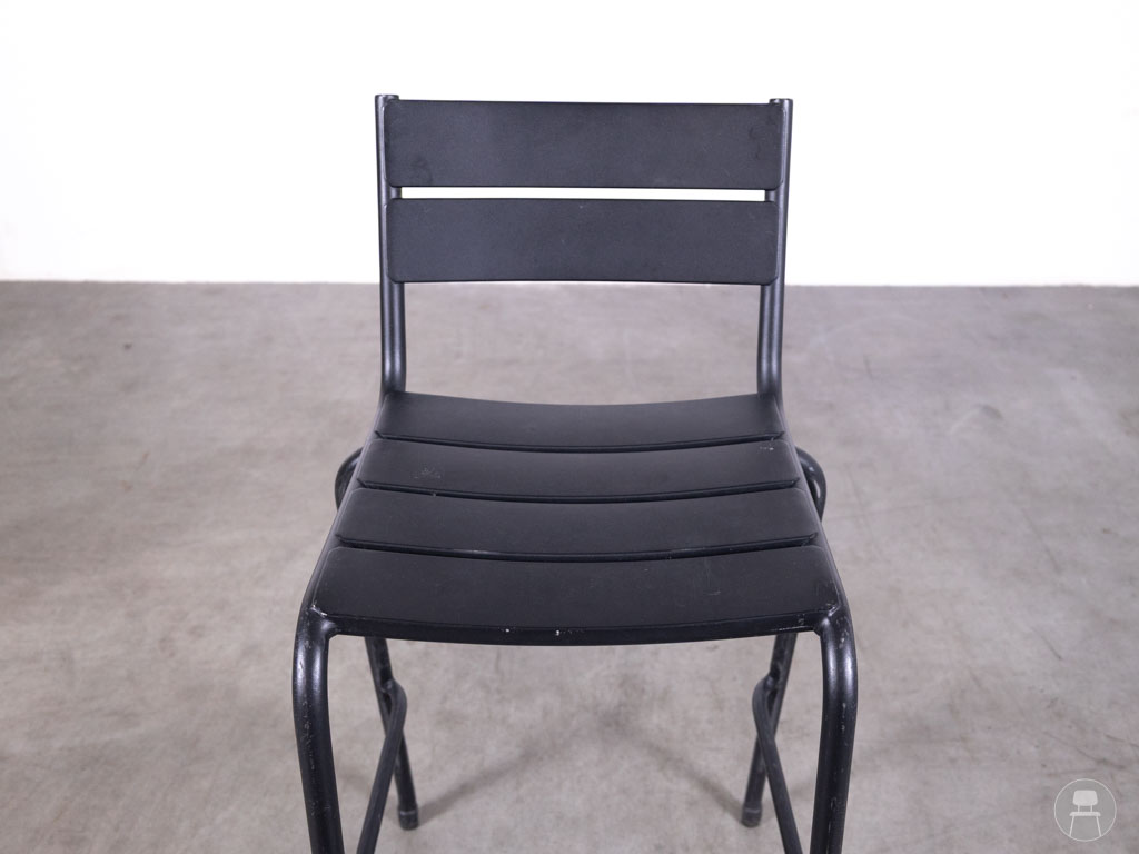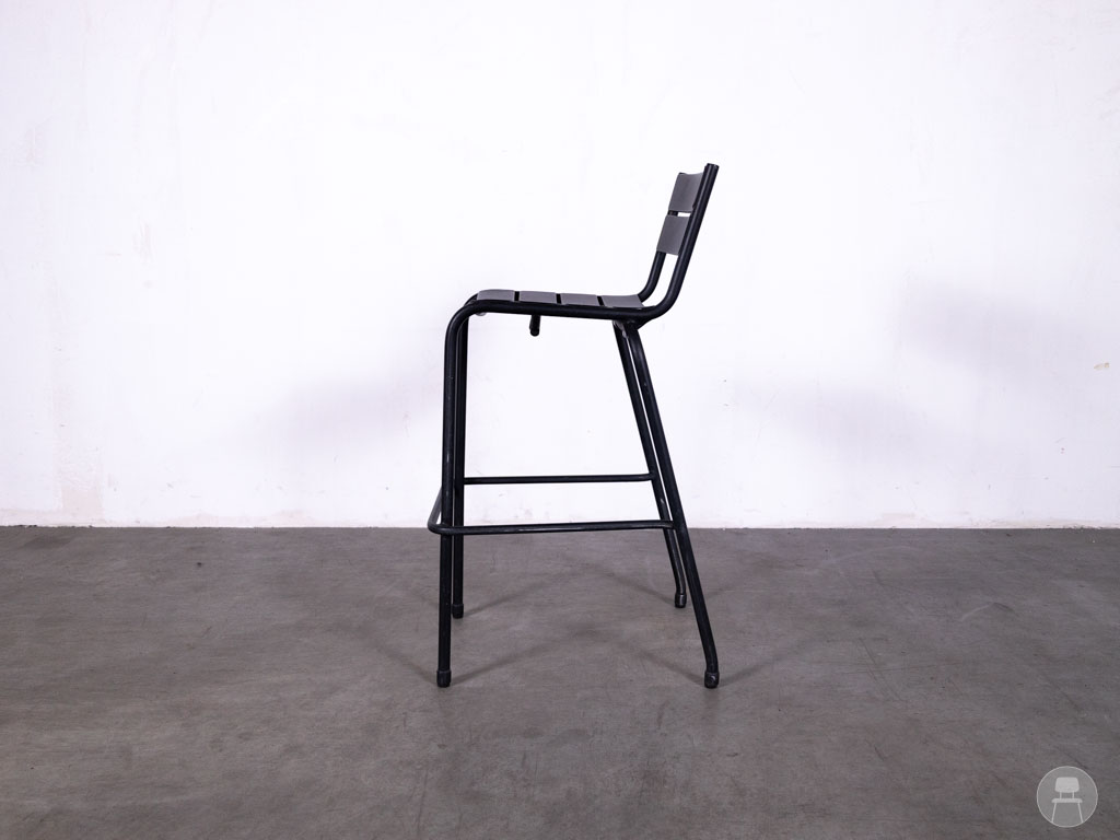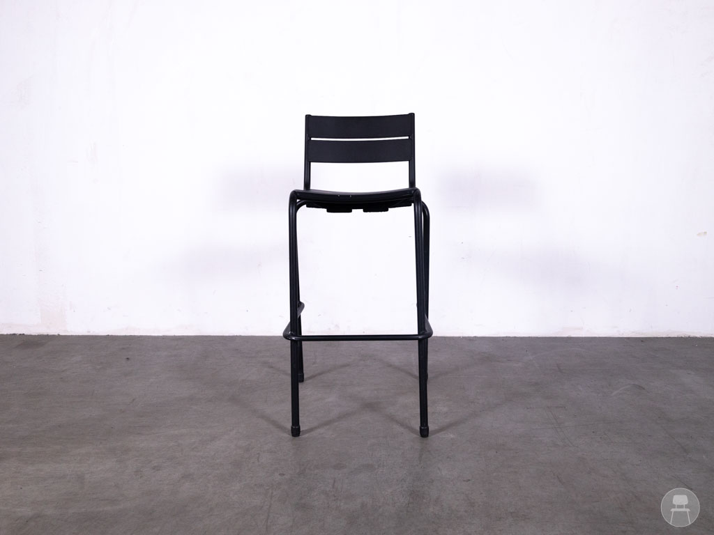 Barkruk Girola HS zwart Satelliet laat je horecazaak stralen en heeft een krachtige mix van design en functionaliteit! Deze stapelbare barkruk van het gerenommeerde merk Satelliet is volledig vervaardigd uit aluminium en daardoor uitermate geschikt voor zowel binnen als buiten. De slanke, industriële look in mat zwart geeft elke ruimte een eigentijdse, stoere uitstraling, terwijl de horizontale lijnen in rug en zitting zorgen voor een subtiel speels effect.