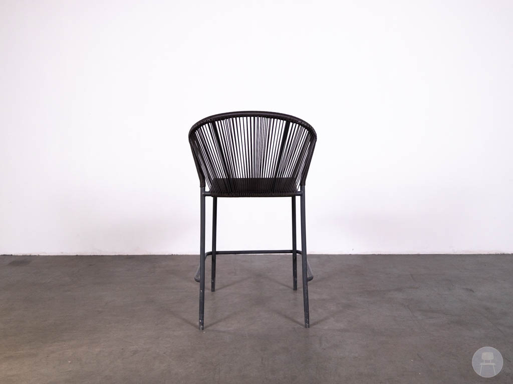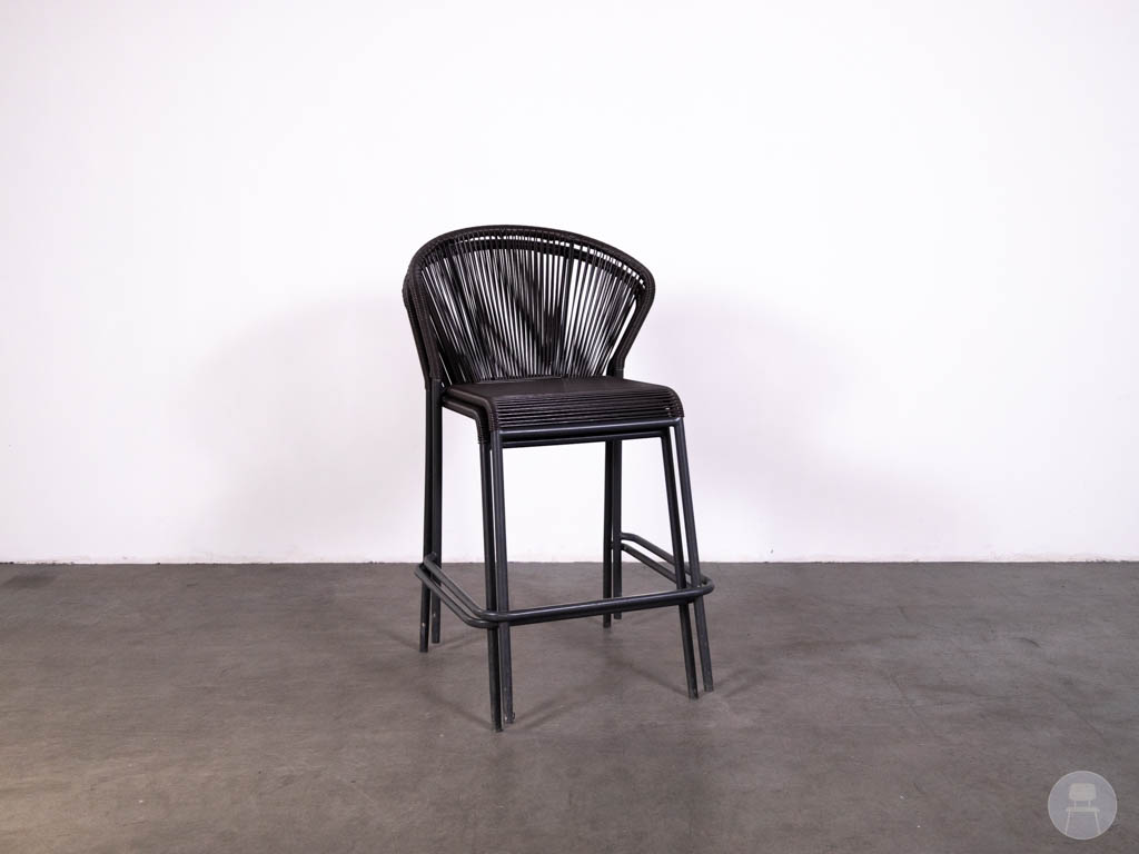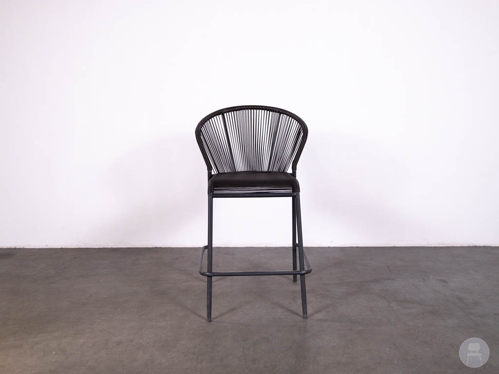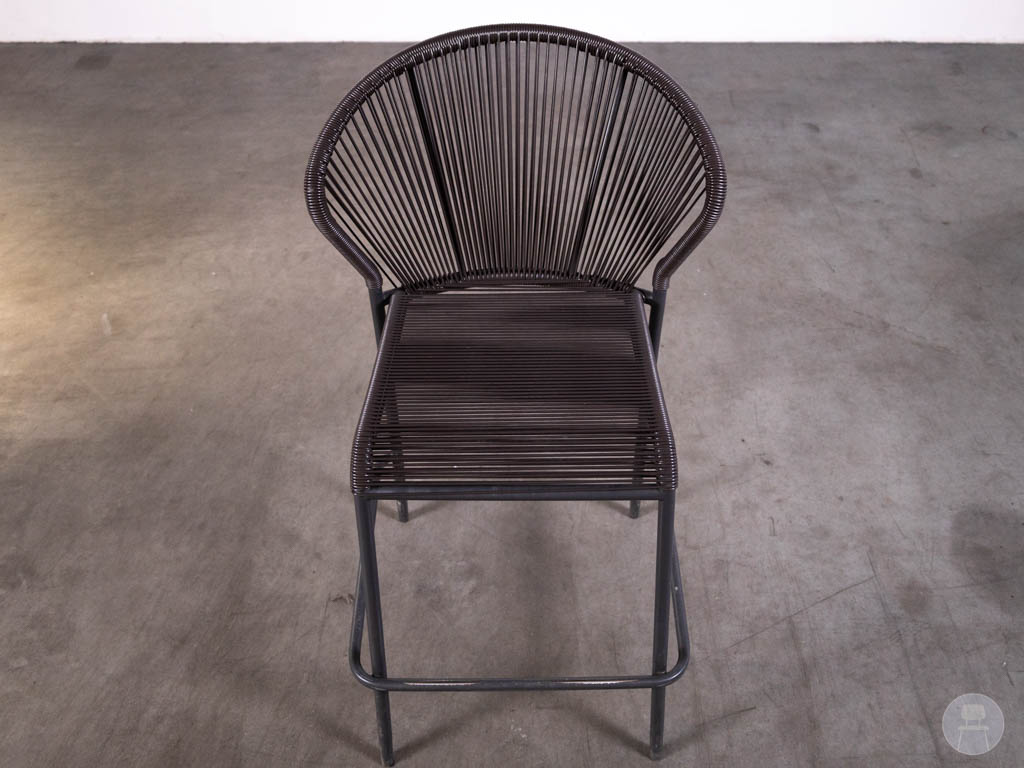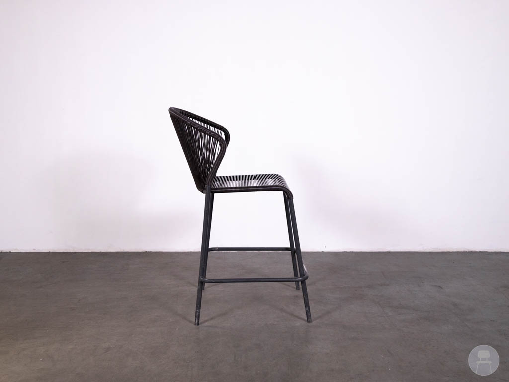 De kruk is uitgevoerd in gepoedercoat staal in een bruine kleur en heeft een zitting en rugleuning van gevlochten metaaldraden. Dit geeft de kruk een luchtige en elegante uitstraling, terwijl het tegelijkertijd zorgt voor stevigheid en duurzaamheid bij intensief gebruik. De geïntegreerde voetensteun biedt extra comfort.