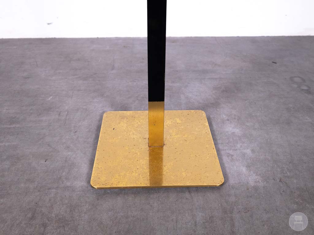 Statafel onderstel Nano HTB Satelliet straalt pure elegantie uit! Het stalen frame is stevig en robuust, maar dankzij de goudkleurige afwerking krijgt het geheel een luxe en moderne uitstraling. De vierkante kolom geeft het onderstel een strakke, minimalistische look die perfect past in zowel chique als industriële settings. Ideaal om een eigen unieke statafel mee samen te stellen – mix & match met je favoriete tafelblad en je hebt een stijlvolle blikvanger!