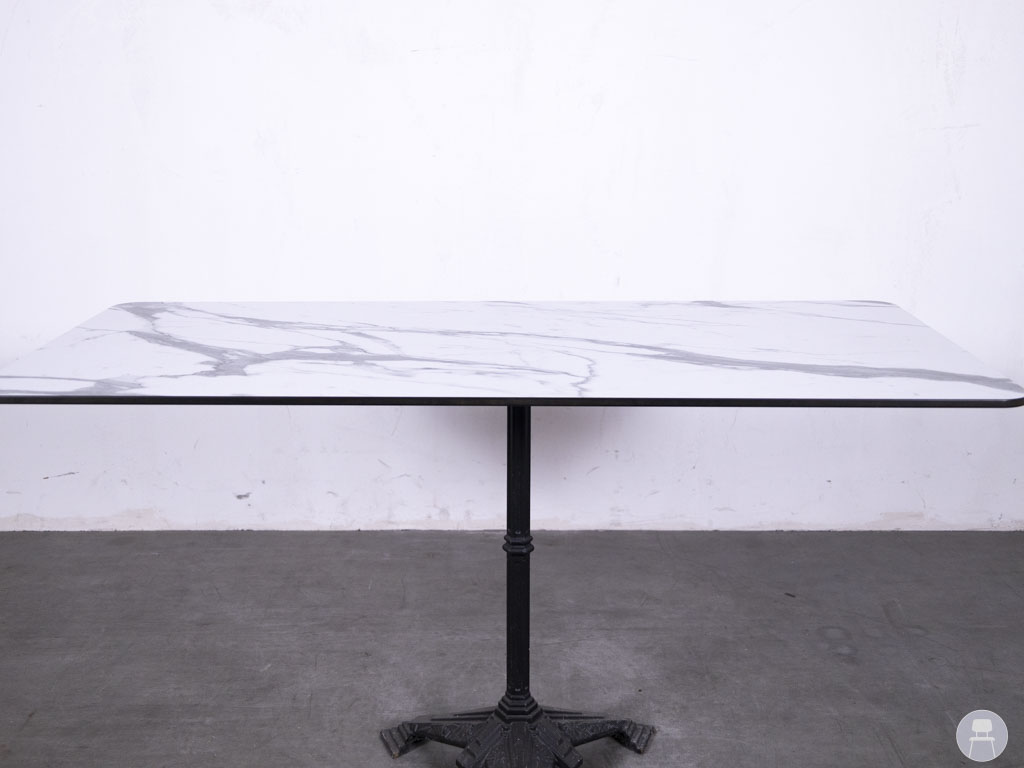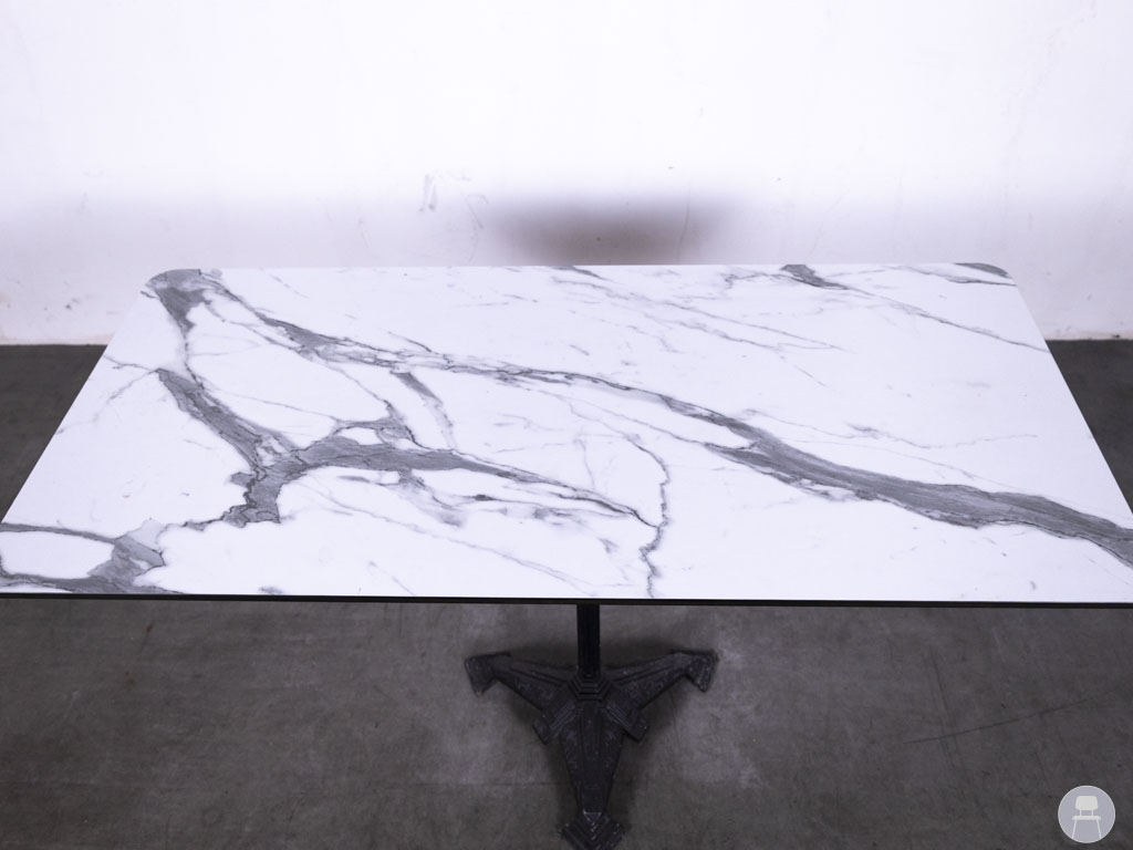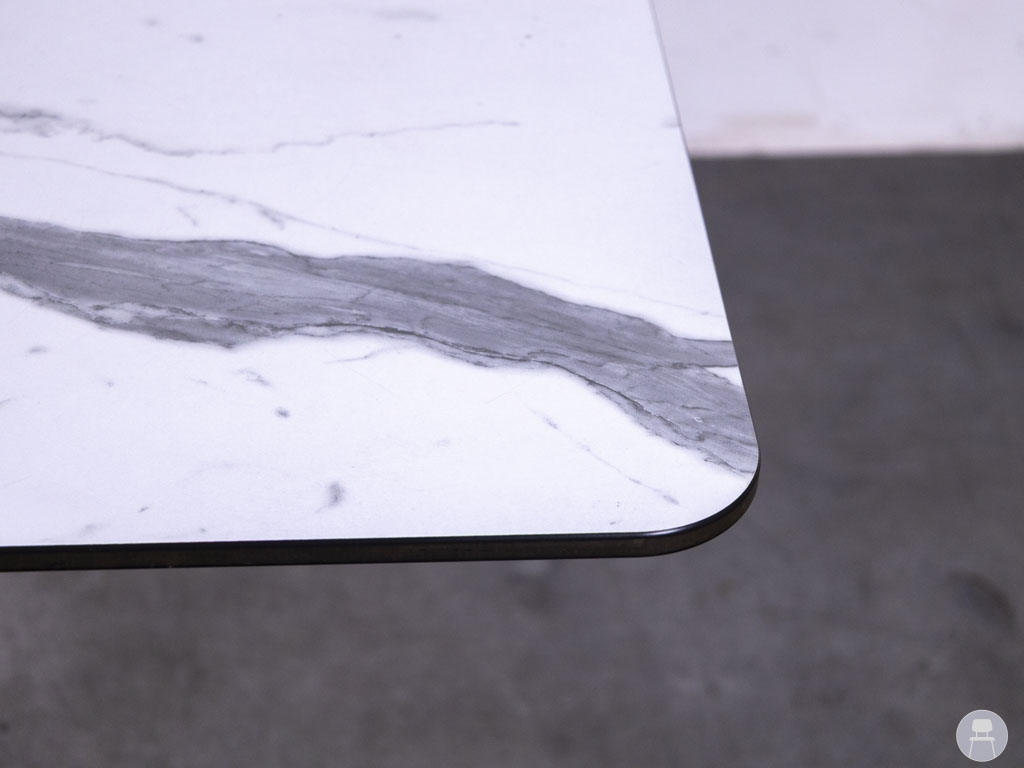 De marmerlook in wit met grijze aders geeft een luxe uitstraling zonder het onderhoud en gewicht van echt marmer. Het blad is afkomstig van het hoogwaardige horecameubilairmerk Satelliet, wat garant staat voor professionele kwaliteit. Dit gebruikte tafelblad is krasvast, hygiënisch en makkelijk schoon te houden. Ideaal voor intensief gebruik op terrassen van cafés, restaurants of hotels.